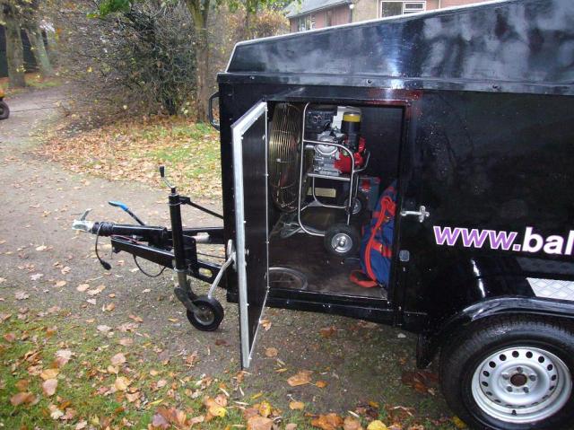 Tandem axle Schroeder / Hoffmann trailer. With sliding roof for built-up transport of the bottom end. 3.15m long, 1.40m wide. Dutch license plate. As new, hardly used.