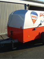 Westfalia single axle trailer, with polyhood. Built August 2000. 3.00m x 1.30m x 0.57m + 0.80m hood.