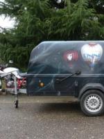 Single axle Westfalia, 3.00m x 1.40m. Built 2001, with polyester hood. There is corrosion at the back of the trailer. Will fit Schroeder 1+5 basket and envelope up to 4000 m3.