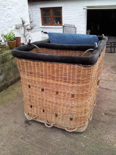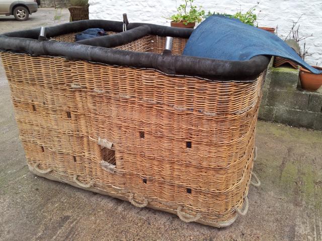 Cameron 120P basket, CB3238 1.35m x 2.00m, black suede top rim, with matching black suede pole covers. Cushion floor in passenger compartment. Pilot restraint harness attachment point in pilot compartment. In good condition