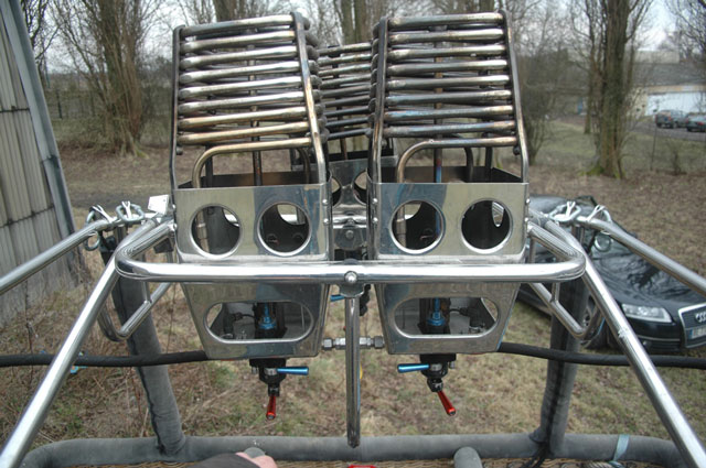 Cameron TT basket (CB7540) for 8-10 passengers, fully equipped with side wall padding, cushion floor. Triple Cameron Shadow burners. Two of them are refurbished at Camerons in 2010 (liquid pilot lights), the other is with vapour pilot light.