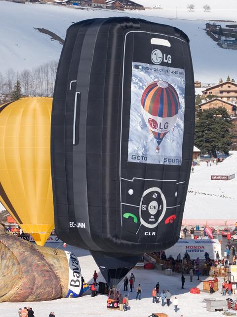 EC-JNN, Cameron Mobile Phone Special Shape. Built 2005, only 38:45 hrs flown. In excellent condition. Gross Volume : 105.000 ft3, effective volume: 90.000 ft3. Display image is a removable banner that can easily be changed. Fresh inspection and ARC.