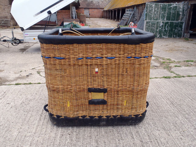 Lindstrand 1.10m x 1.30m straight top basket, with Jetstream S1 double burner. Basket retrimmed in 2006 by Lindstrand Balloons with new black leather top rim, matching rod covers, new black external rope handles, scuff leather base. Only 70 hrs since re-trim. Cushion floor, red side wall padding at front and back, poles and rod covers in Lindstrand bag, fire extinguisher pouch. Burner has black main block with red writing (matches kit). Hoses have TEMA fittings, burner serviced by Chris Dunkley in March 2012. Absolutely stunning kit but no longer needed as sponsorship has come to an end.