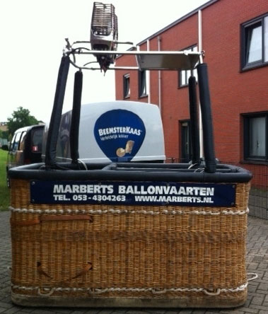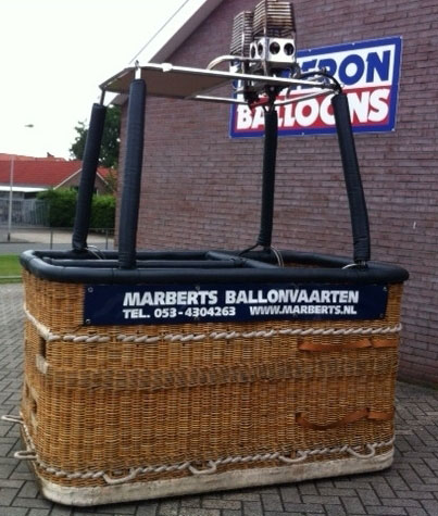 Cameron 160-180 single T basket with removable partition. 200 hrs, will fit 6 - 7 passengers. All cane weave, solid floor, navy leather top rim, navy side wall padding, cushion floor. Completely equippped with fire extinguisher, first aid kit, pilot restraint anchor, drop line, document bag, leather straps, etc. Basket is custom made, T-partition is removable to transport the envelope inside the basket, to fit a Westfalia trailer. Cameron Stealth-Shadow burner in large frame with heath shield, height adjustable, tether lugs, 475 hrs. The bottom end was inspected on June 1st 2012 and comes with an EASA Form 1. Price when new: € 21.000,- excl VAT
