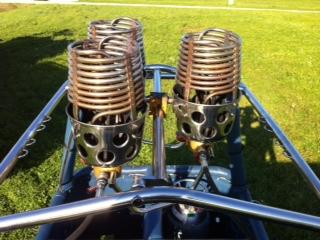 Lindstrand DT Bottom End. Basket 2.60m x 1.52m, with blue leather top rim. Built 2000, only 390 hours (approximately 340 landings). One wall between the partitions can be removed easily to get a bigger partition (for wheelchair, dinner table, etc.). Basket is not distorted, wicker in excellent condition. With cushion floor, basket antenna, tie down loops. Powerful Lindstrand Jetstream Triple burner, with new hoses installed in 2010, TEMA connections.
