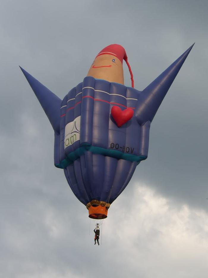OO-BOV, Kubicek BB Mascot, built June 1987. 115 flights, 70 hrs. 900m3 / 31.000 ft3. S/N 2. Probably the only special shape solo cloudhopper in the world. Trade in of a regular balloon is possible, please get in contact to discuss this. With Thunder & Colt swing-seat cloudhopper bottom end (harness/seat, Worthington tank and burner).