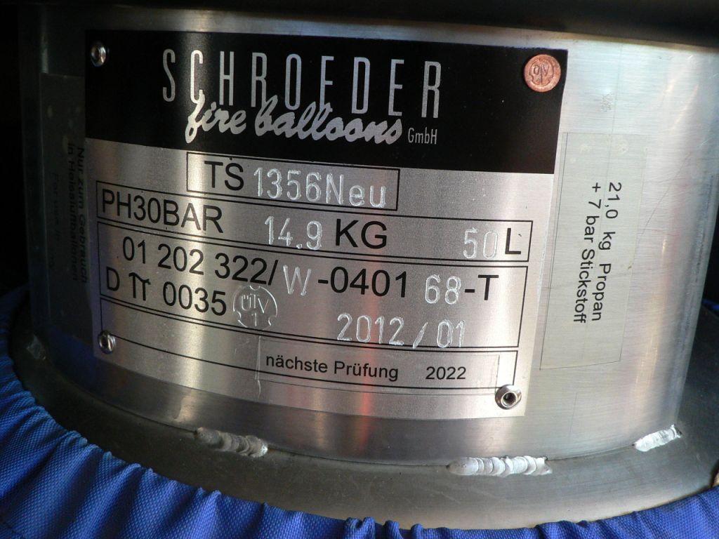 Various Schroeder VA50 cylinders, 21kg propane. Renewed by Schroeder, with ADR "Pi" sign, full certificate available, no life limit.