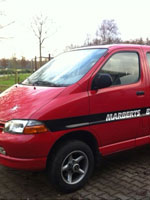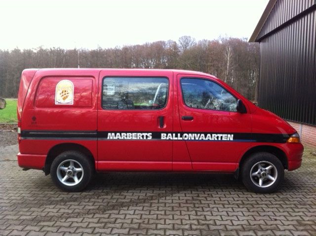 Toyota Hiace 4WD Van. 176.000 km. Brand new accu. 6-7 seats, electric windows, 2 electric sun roofs. 2 sliding doors for the back seats. Alloy wheels with good tires (6 mm). Navigation, Sony radio / cd player. Icom airband radio with microphone and roof top antenna. Steel floor in the back, with lots of space for equipment, fire extinguisher, helium bottle, etc. In very nice condition. Always maintained by Toyota dealer. Fully equipped for ballooning.