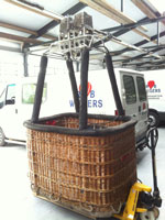 Cameron CB310-4A flat top basket. Outside dimensions approximately 1.50m x 1.20m. Internal height: 1.00m. Cameron MKIV Super burner with vapour pilot lights.