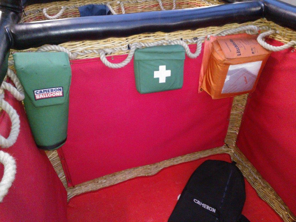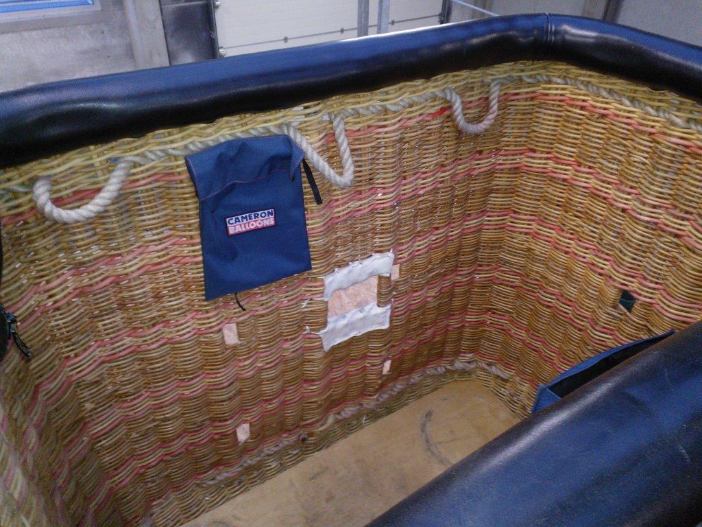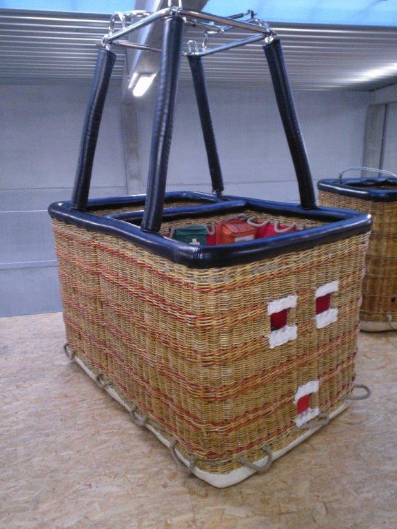 Cameron 120P basket, black leather top rim, poles, pole covers. 4 new karabiners. Side wall padding, cushion floor, 2kg fire extinguisher in bag, first aid kit, fire blanket, document bag, smart vent bag. Pneumatic height adustable gimbal block burner frame. Frame is suitable for use with double Stratus, double Shadow, double Stealth or Stealth/Shadow burner. Frame can be used in both directions (horizontally or vertically while inflating). Immediately available. Can be seen and inspected in Belgium. Little use, superb condition. Comes with fresh EASA Form 1.