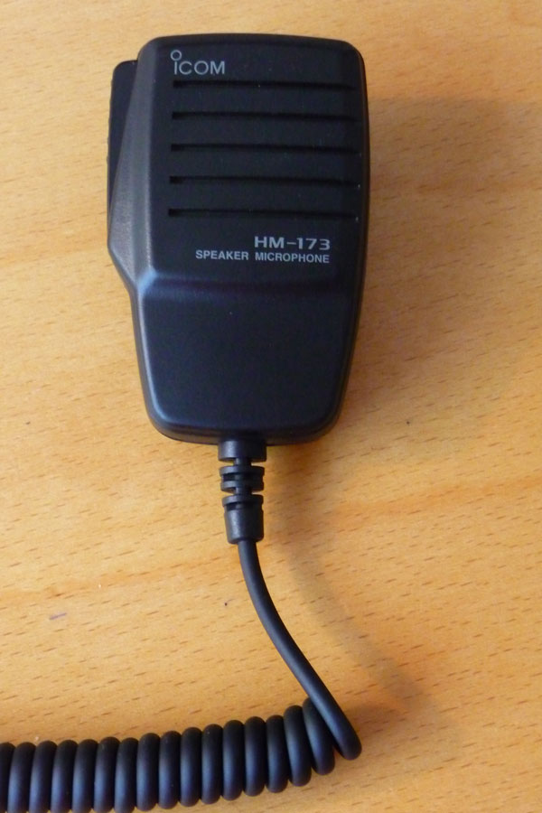 An Icom HM-173 external microphone with integrated loudspeaker is available for € 50,-