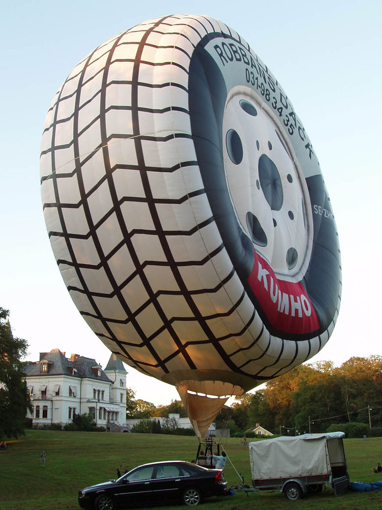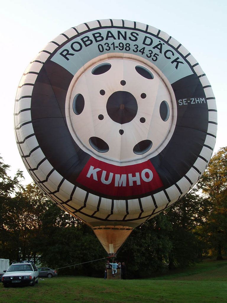 SE-ZHM, Kubicek BB Pneu, built 1996. 78 hrs. volume: 2600 m3 / 90.000 ft3, diameter 20.0m. width 8.2m. MTOW 630kg, envelope weight 168kg. Kubicek K-10 basket, outside dimensions 1.00m x 1.10m, inside dimensions 0.95 x 1.05m, built 1996, 78 hrs. Black suede top rim, cushion floor, document case. Needs a little bit of raw hide repair to get it perfect. Kubicek HD-3 double burner, built 1996, 78 hrs. Vapour pilot lights, height-adjustable frame, REGO fittings. Envelope is in very good condition! Artwork on sewn banners, easy to remove. Everything OK for fresh ARC (€ 900,-). Some small holes on inner fabric cone. Swedish registered.