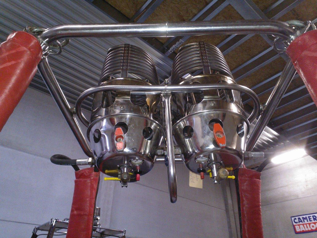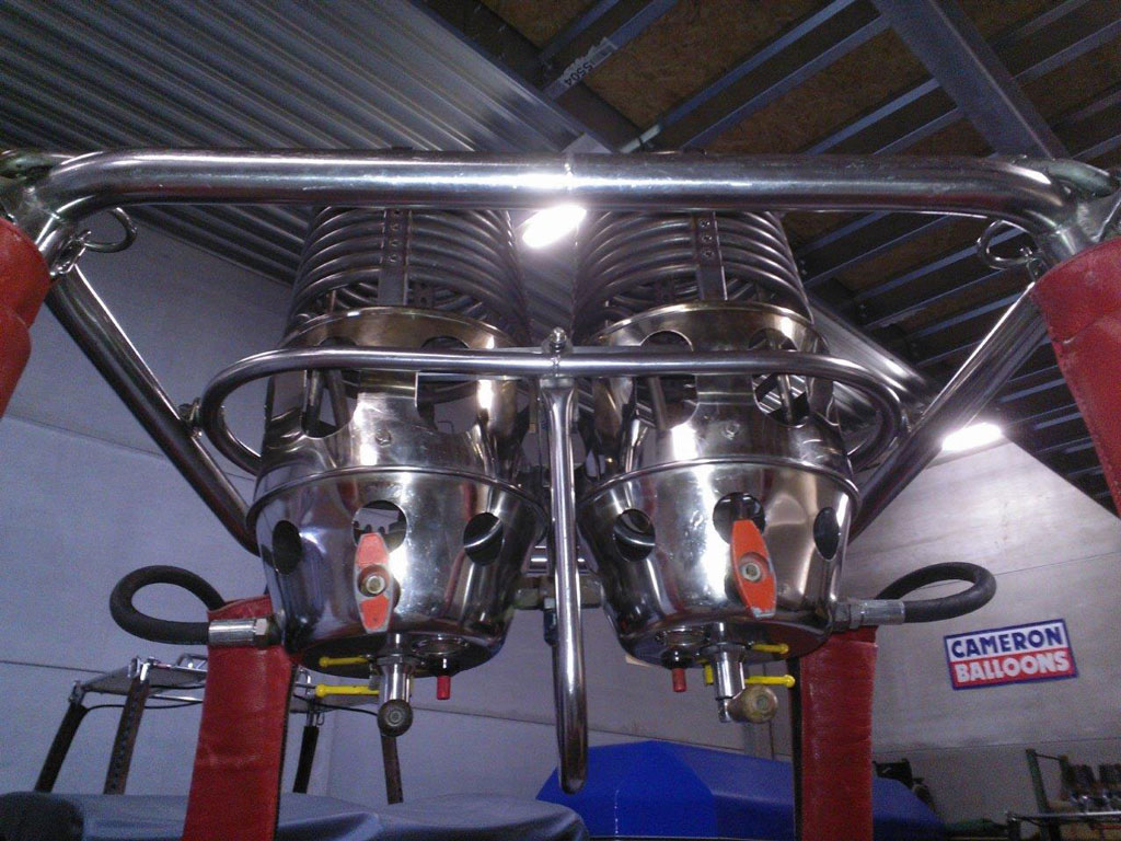 Thunder and Colt bottom end, 105 solid floor basket with red leather top rim. Fire extinguisher pocket with new 1kg fire extinguisher. Document bag. 4 poles, 4 covers, 4 karabiners. Double Thunder and Colt Magnum C3T burner with liquid pilot lights, completely overhauled in January 2014: maintenance to liquid pilot lights, new KSP125 grease, new O-rings, new liquid hoses, new REGO fittings and 2 new pressure gauges. Overhaul completely performed with original Cameron Balloons parts only. All in very good condition. Immediately available. Comes with fresh Form 1.