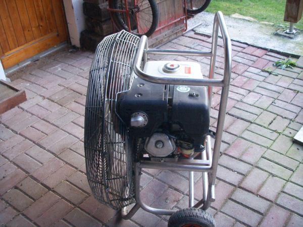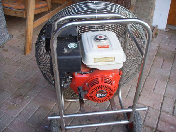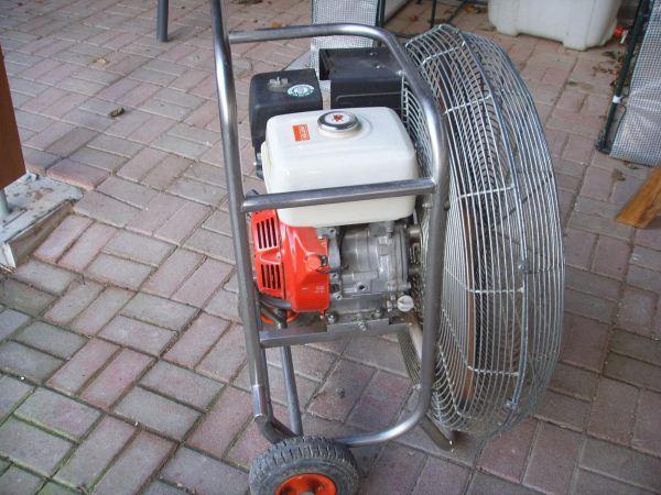 8.0 HP inflation fan Honda, wooden prop, flip wheel frame, engine and fuel tank as new without damages. In very good condition.