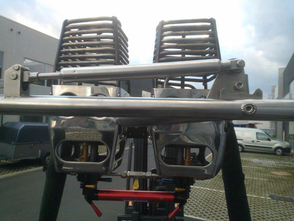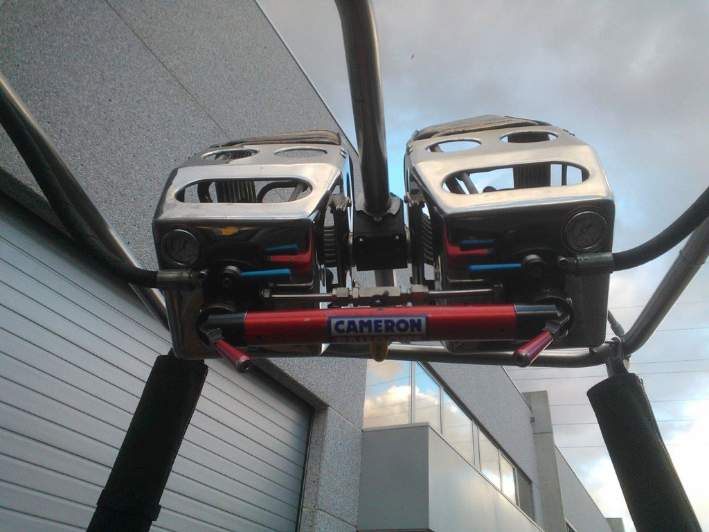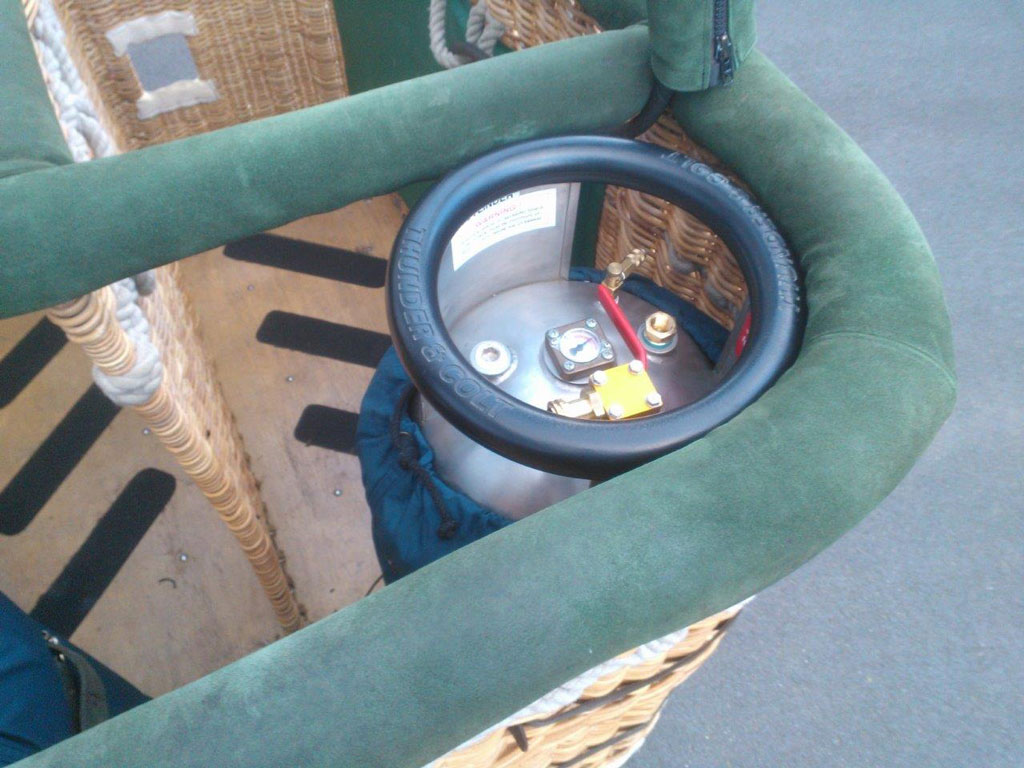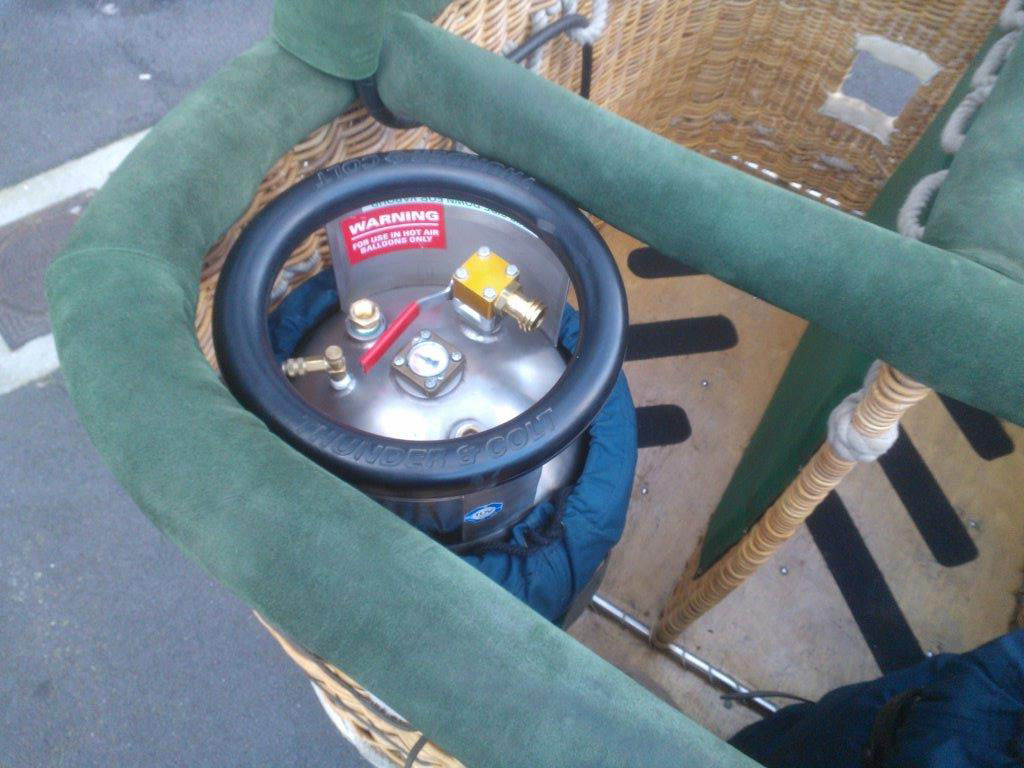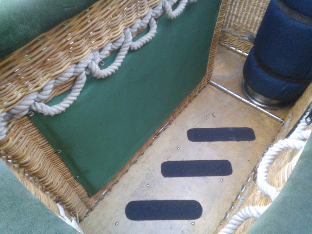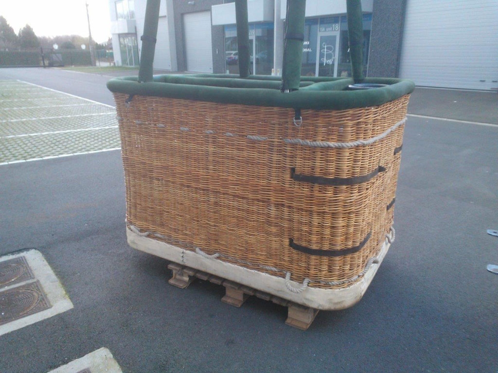Cameron 140/160T bottom end. CB8200 single T solid floor basket, outside dimensions 1.80m x 1.30m, built 2006, Green suede top rim and pole covers. Side wall padding. All cane weave. 1 small compartment which fits 3 big tanks or 2 big tanks + 1 pilot, and 2 passenger compartments. Weighs 125kg. Cameron double Super Shadow burner, built 2006, liquid pilot lights, REGO fittings, in pneumatic adjustable gimbal block frame. 2x Cameron CB959 (87L) cylinders, built 1998, REGO fittings, quick shut off valves. PPT/PRV/INT valid until 08/2018. Complete bottom end fits inside a high sided 3.0m Westfalia trailer, together with an envelope and inflation fan.