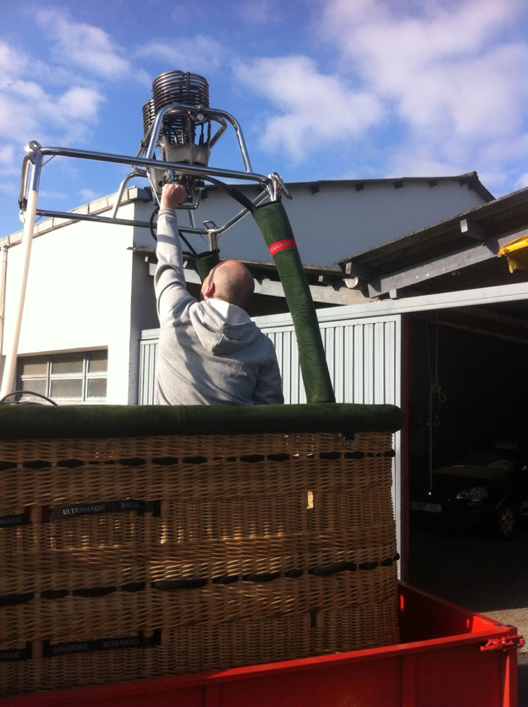 EC-LMZ Ultramagic T-150, built 2011, 46 hrs. Rotation vents. Ultramagic C6 basket (approximately 1.80m x 1.30m) with removable compartition, green suede top rim and pole covers. Ultramagic MK1 burner with vapour pilot lights, REGO fittings. Last inspected May 2013. The equipment is sold by the family of the pilot who deceased recently.