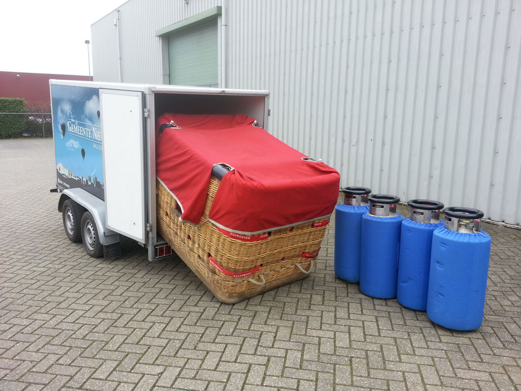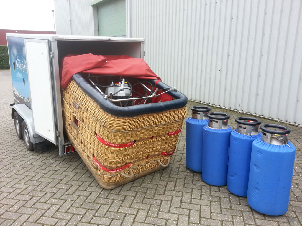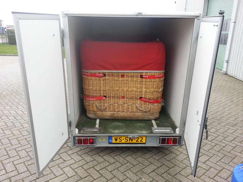 PH-HUW, Schroeder Fire Balloons G 40/24, built 2006, 177 flights, 214:10 hrs. Thermogrip top, Paraquick fast deflation system, 140.000 ft3 / 4.000 m3. Not flown since October 8th, 2012. Schroeder VI basket, 1.20m x 1.60m with black leather top rim and covers. Cushion floor, side wall padding. First aid kit, fire extinguisher and fire blanket, quick release system with rope, 8 nylon cylinder straps, basket cover. Schroeder FB6 double burner with TEMA fittings and vapour pilot lights, in height-adjustable frame. 2x Schroeder VA70 cylinders, master, TEMA fittings, built 2006, PRV/PPT/INT valid until 2016, blue cover. 2x Schroeder VA50 cylinders, master, TEMA fittings, built 2006, PRV/PPT/INT valid until 2016, blue cover. 8.0 HP inflation fan, flip wheel frame, with new carbon fiber propeller. Closed tandem axle trailer with side door, inside dimensions: 3.00m long x 1.50m wide x 1.50m high, inflation fan mount fitted. Schroeder Optivario altimeter with temperature sensor. In good working order. ARC will be renewed on April 18th 2014.