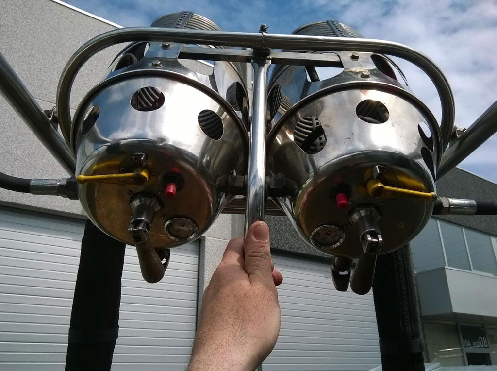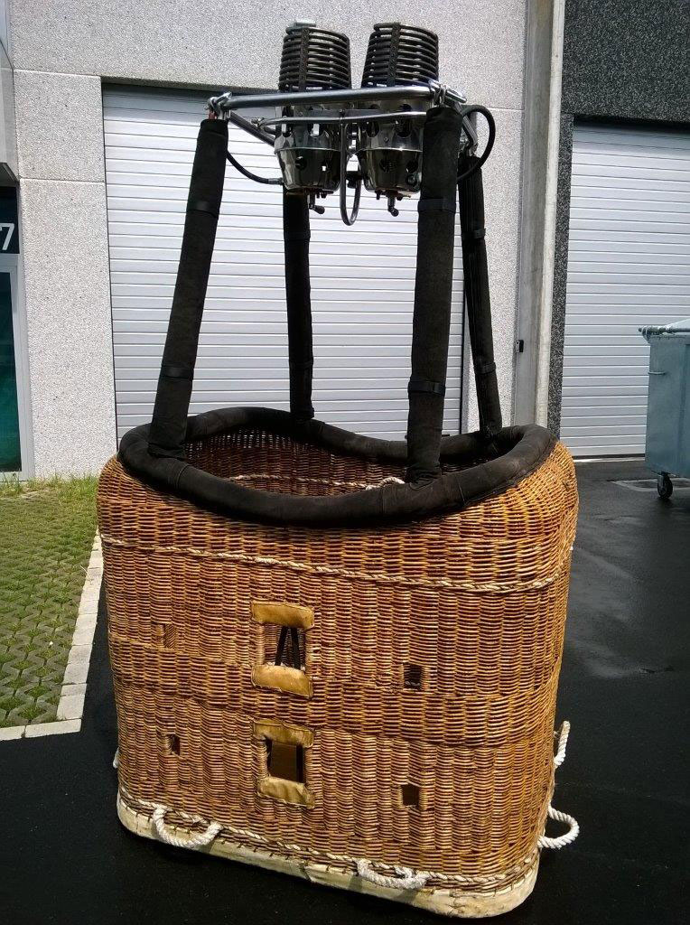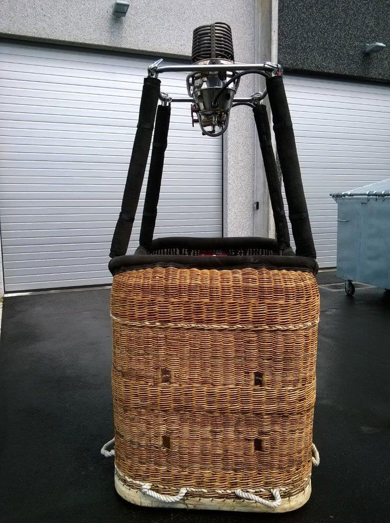 Thunder & Colt 105 solid floor hi-spec basket, black suede top rim, new black storage bag, new fire extinguisher. 4 poles, 4 covers, 4 brand new karabiners. Blue basket cover with perfect fit. Thunder & Colt double Magnum C3T burner, with liquid pilot lights. Burner completely overhauled in January 2014 with liquid pilot light maintenance, new KSP125 grease, new O-rings, new liquid hoses, new REGO fittings and new pressure gauges. Overhaul completely performed with original Cameron Balloons parts only. Immediately available, comes with fresh EASA Form 1