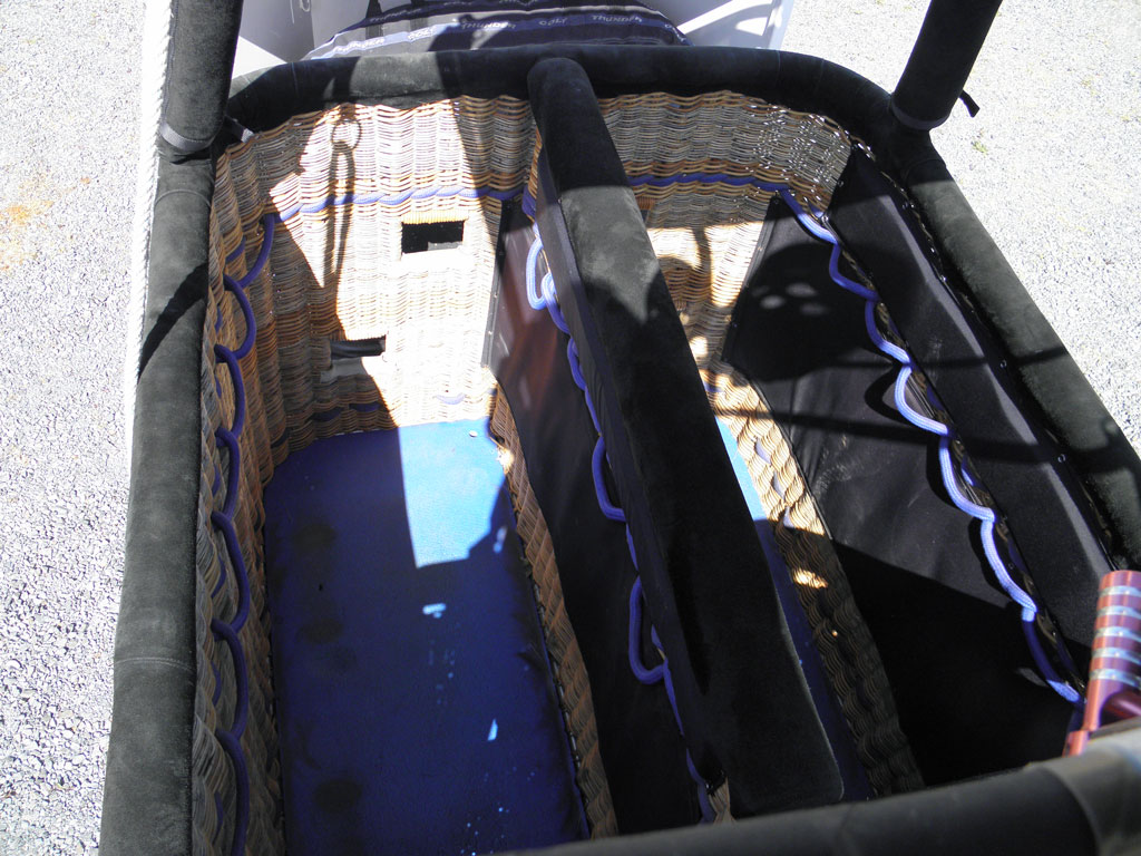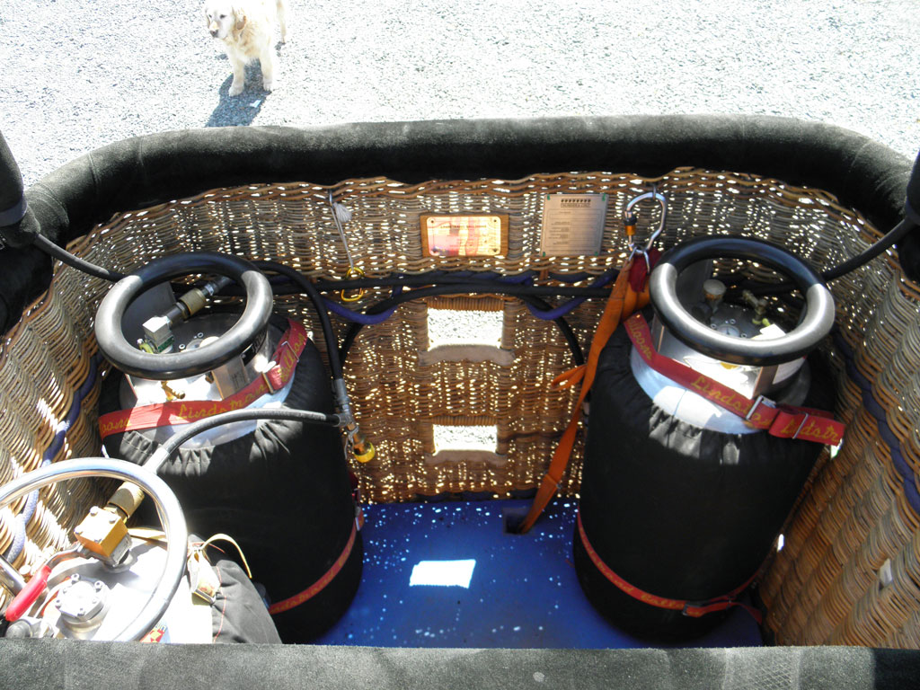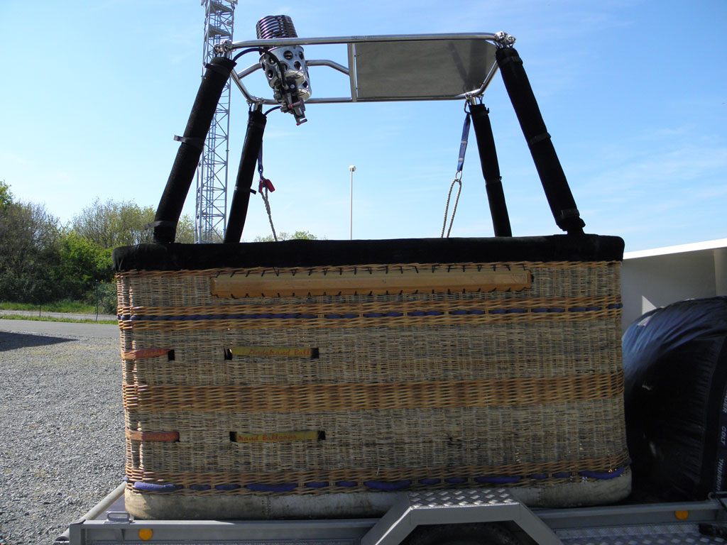 Lindstrand single T basket, BA-035-A-001, 2.40m x 1.40m (outside 2.50m x 1.47m), built May 2006, for pilot + 8 passengers. Black suede top rim replaced in 2013. Horizontal protective runner, drop line, karabiners. Lindstrand double Jetstream series 2 burner (BU-008-A-002), built May 2006, liquid pilot lights, toggle valves, REGO connectors, heat shield, hoses replaced in 2012. 2x Schroeder VA50 cylinders with REGO fittings, QSO valves, PPT/INT/PRV valid until 05/2024. 1x Lindstrand V30 cylinder with REGO fitting, QSO valve, PPT/INT/PRV valid until 05/2022. Immediately available, comes with EASA Form 1.