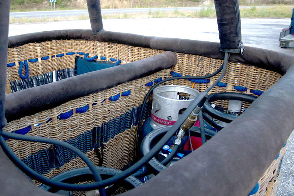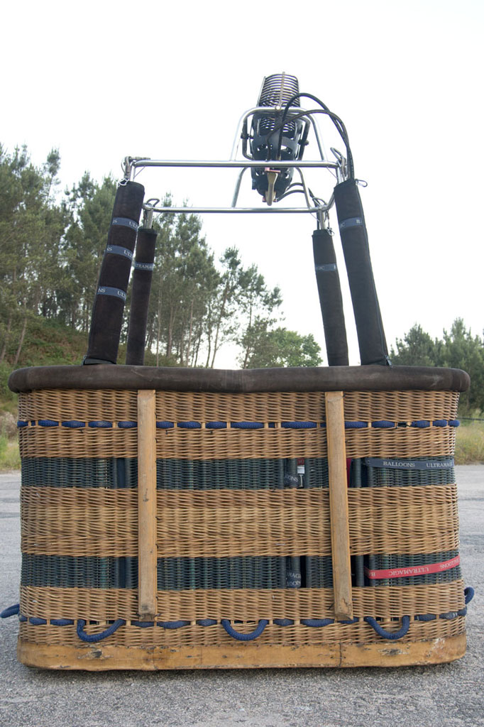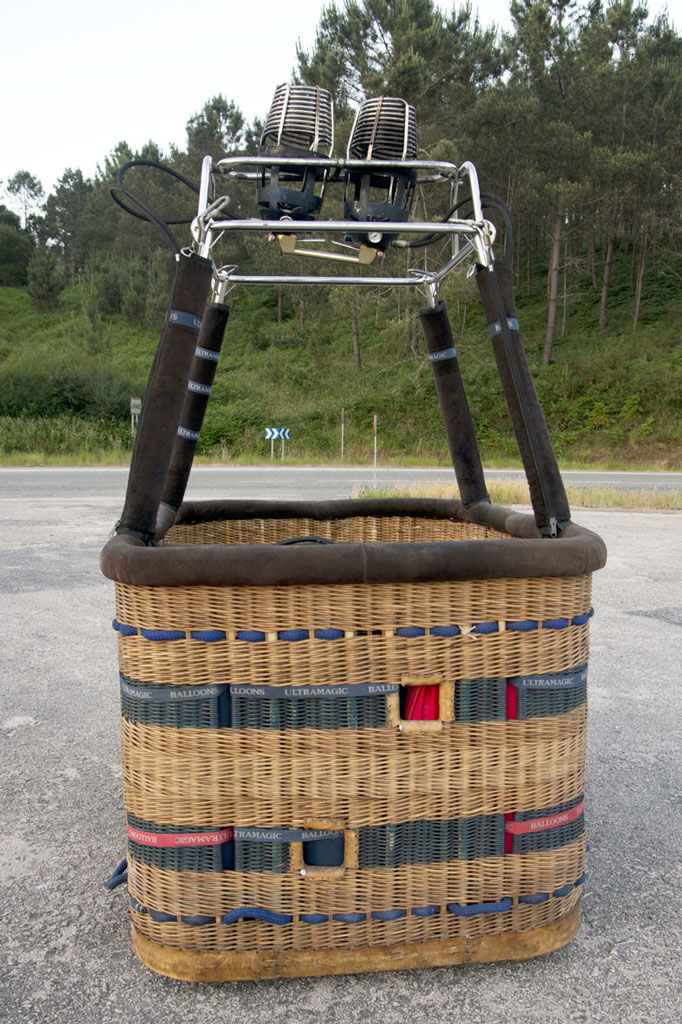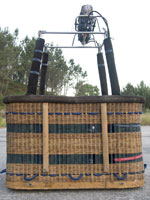 Ultramagic C6 basket, 1.35m x 1.80m, built 2001, with removable partition, side wall padding, brown suede top rim. Ultramagic MK10 double burner, vapour pilot lights. New hoses installed in 2006, REGO fittings.