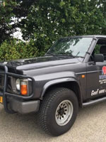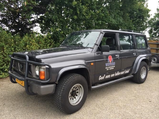 Nissan Patrol Y60 2.8 GR TD Wagon, first registered 1990, second owner since 1992. 255.951 km, tyres 8 years / 6.000km old. 116 HP (85 kW) 6 cylinder diesel engine. 5-way gearbox, 4 wheel drive. Electric windows, tow bar (max towing mass 3.500 kg). Emtpy weight 1.950 kg. 7 seats. No current MOT, new MOT at delivery. Bendix King air band radio built-in. Stored indoors for 8 years but battery still full, engine started at first key-turn. Engine runs without any troubles.