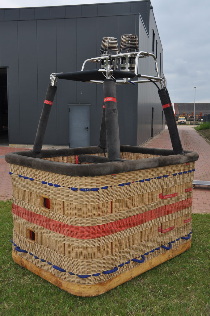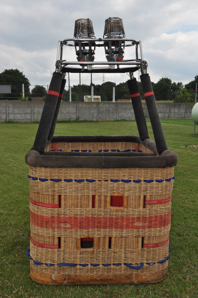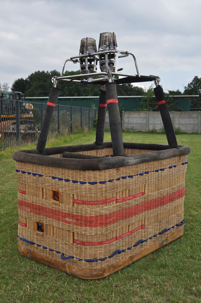 Ultramagic C6 basket, approximately 1.80m x 1.30m. Built 2002, 270h40m. Suede top rim, removable partition wall, side wall padding, cushion floor. Ultramagic Mk21 double burner, built 2002, 270h40m. Liquid pilot lights, REGO fittings. Comes with fresh documents.