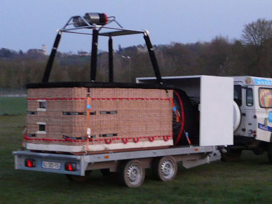 F-GOEB, Kubicek BB51Z, built 2010, 410 hrs. 5100 m3 / 180.000 ft3, 100% polyester fabric, with smart vent and turning vents. Kubicek K32T single T basket with black suede top rim. With dropline, cushion floor, side wall padding, first aid kit, etc. Kubicek Ignis double burner with heatshield, liquid pilot lights, REGO fittings. 2x Cameron CB599 (45 liter) cylinders, REGO fittings, new PRV, PPT valid until 2018. 2x Schroeder VA70 (60 liter) cylinders, REGO fittings, new PRV, PPT valid until 2019. 9.0 HP inflation fan Honda with wooden prop. Tandem axle flatbed trailer with cabin. Will be sold with fresh CofA.