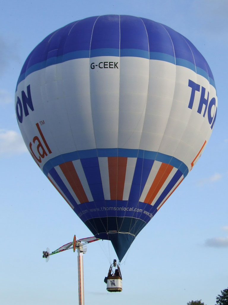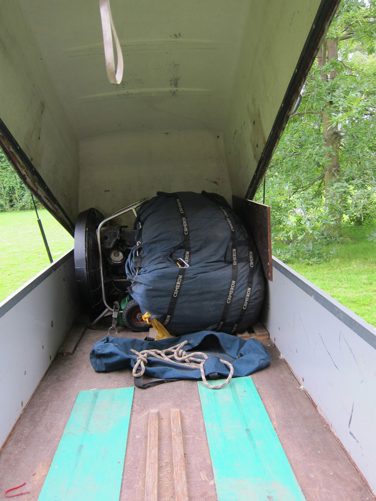 G-CEEK, Cameron Z-105. Built 2006, 187 hrs. Hyperlast top, rotation vents. Cameron Aristocrat 105 basket, 1.40m L x 1.20m W x 1.10m H with suede top rim, drop line, quick release, fire extinguisher, first aid kit. Cameron MK4 double burners with vapour pilot lights, REGO fittings. 2x 60L and 2x 40L Cameron stainless steel cylinders (PRV/PPT/INT valid until 06/2017). Single axle 3.0m Westfalia trailer with high sides. 8.0 HP Cameron inflation fan. Artwork can stay. Envelope in excellent condition. Will come with fresh CofA if bought as complete set.