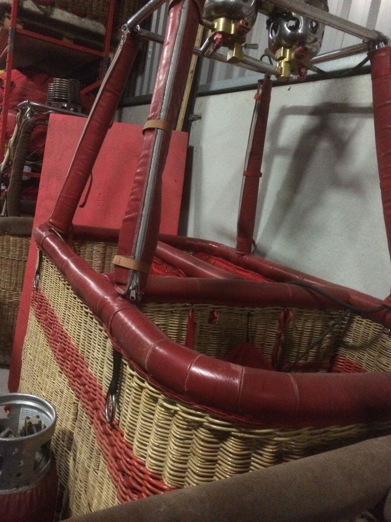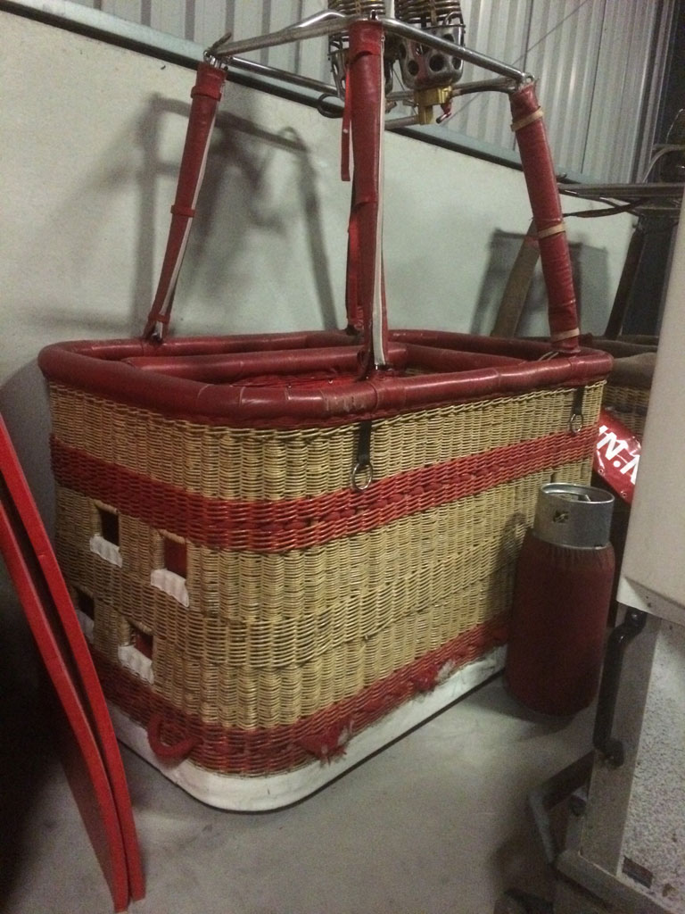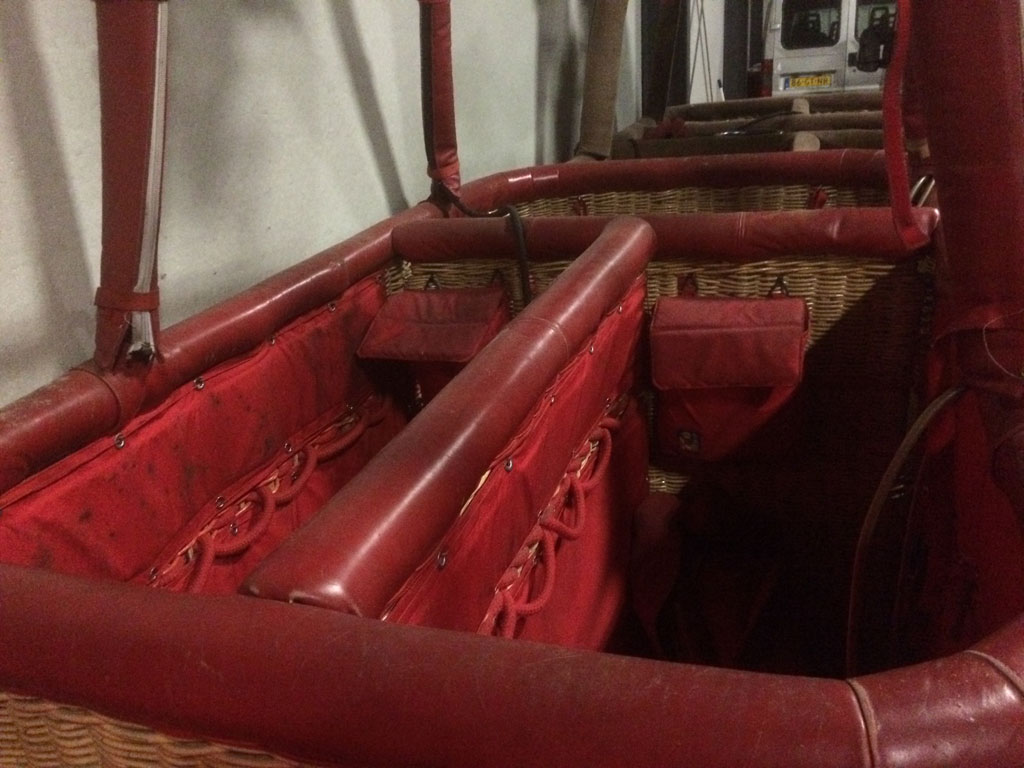 Lindstrand Single T basket for pilot + 6, built 1999, 400 hrs. 2.40m x 1.40m. Red leather top rim, side wall padding, cushion floor, drop line, first aid kit, fire extinguisher. Double Lindstrand Jetstream 2 burner with squeeze valves, REGO fittings.