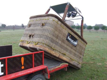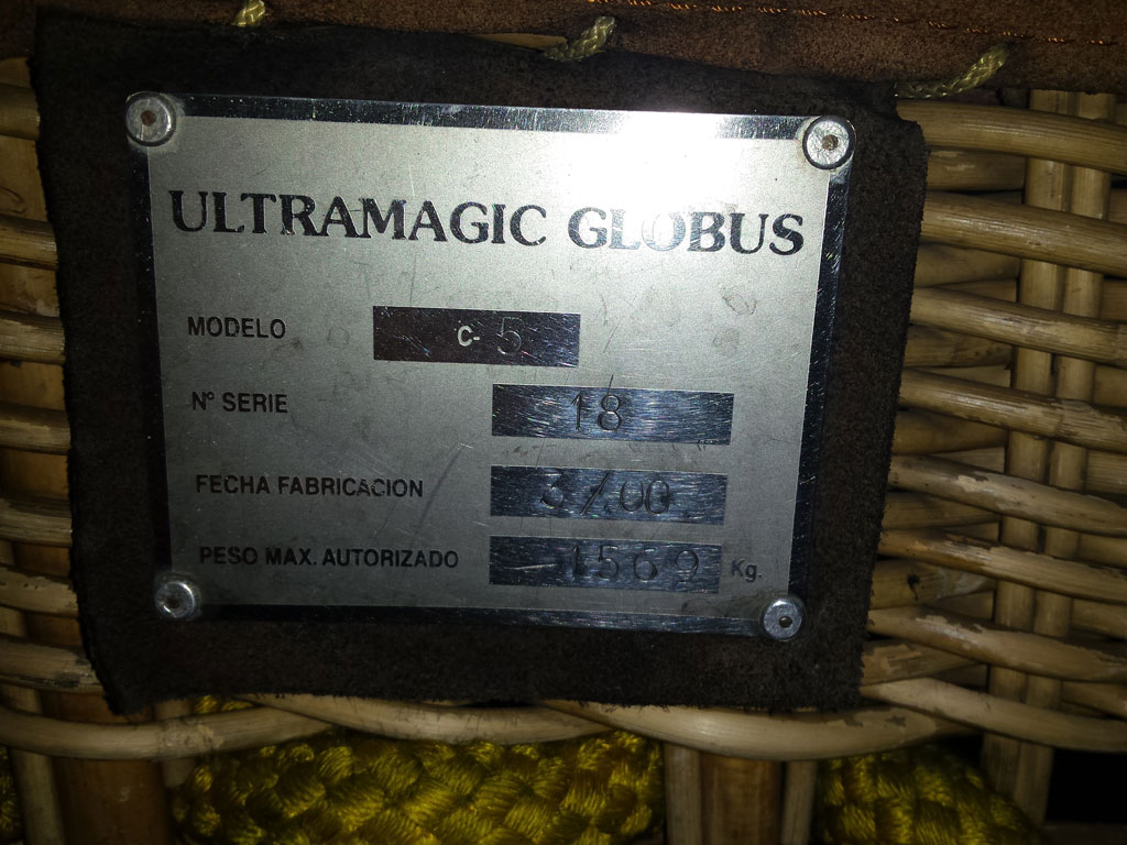 Ultramagic C5L basket, built 2000, 324 hrs. 2.40m x 1.40m. Brown suede top rim, side wall padding. Small damage to the leather, will be repaired by Ultramagic before delivery. Burner frame included. Comes with EASA Form 1.