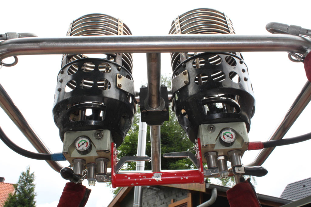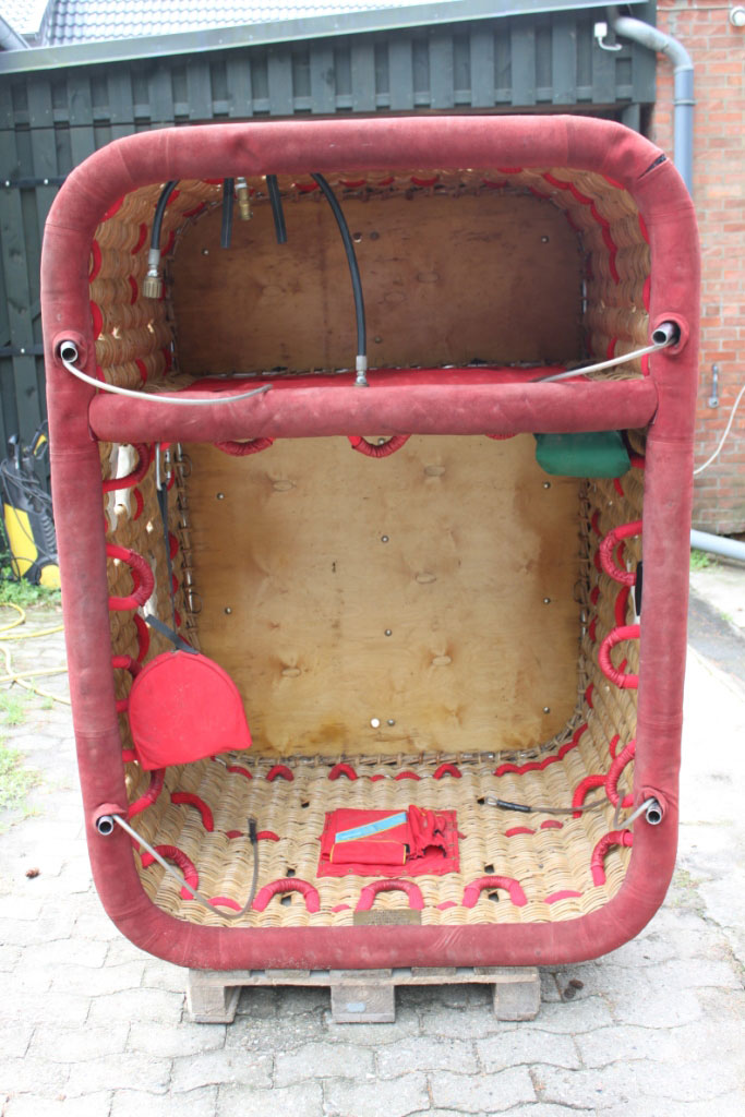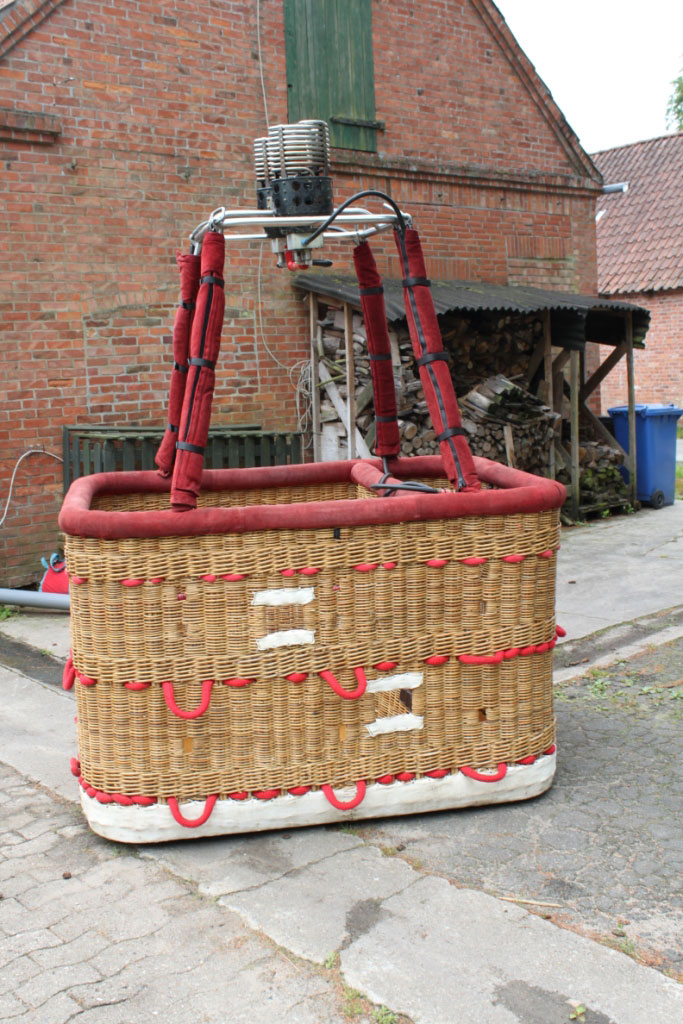 D-OBWO, SkyBalloon 120-24, built 1996, approximately 250 hrs, turning vents. SkyBalloons partitioned basket, built 1996, 1.80m x 1.30m, Red suede top rim (needs repair on one corner), cushion floor, drop line, bags, suitable for pilot + 4. SkyBalloon Mistral double burner, comes with new hoses + maintenance kit and seal kit.