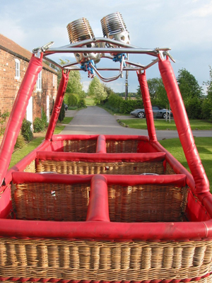 Cameron basket double-T, leather top (red), cushion floor + fully padded walls. Lindstrand titanium triple burner. Collective central fuelsystem. 4 tanks stainless steel rego. Excellent condition. Never flown over 10 passengers.