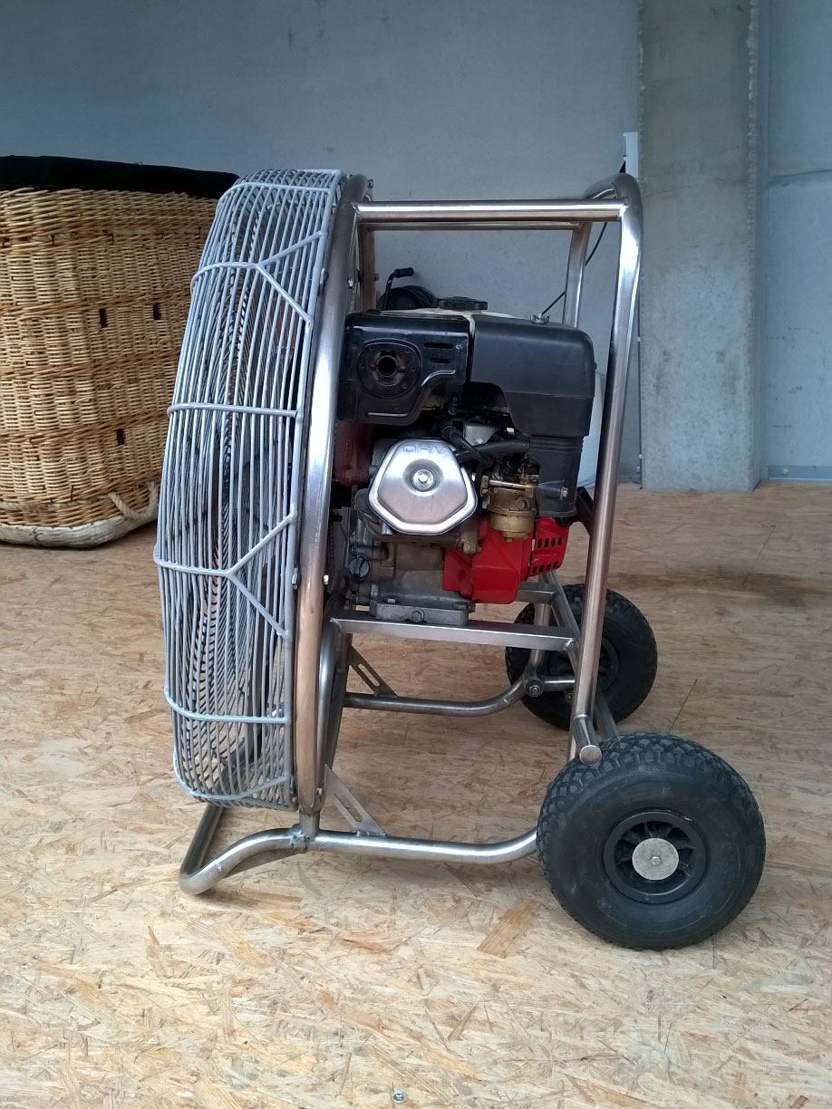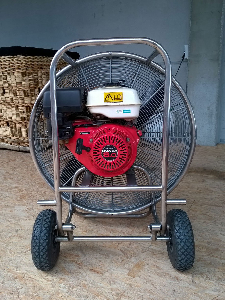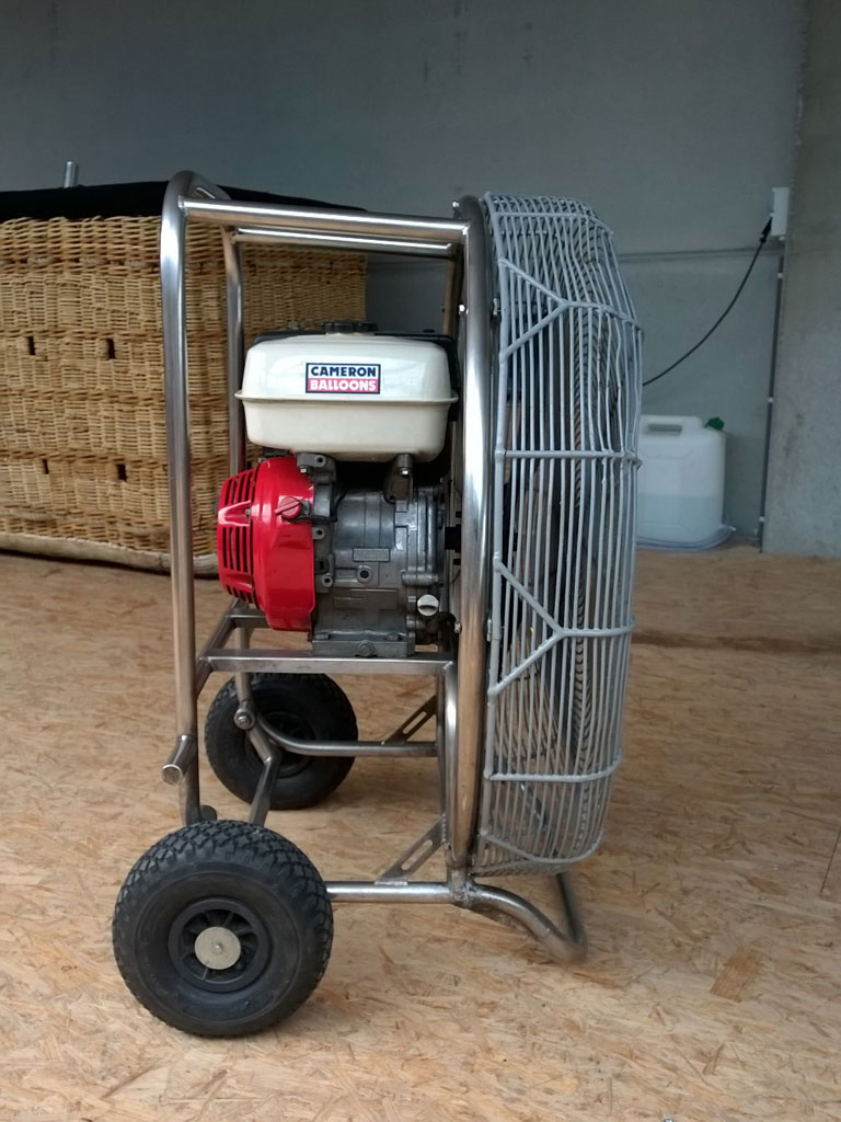 8.0 HP inflation fan Cameron, current model, with flip wheel frame and carbon fiber propeller. Fully serviced in July 2015. Good frame, cage and propeller. Immediately available.
