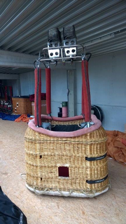 G-BSEH, Cameron V-77, built 1990, 140 hrs since rebuild with new fabric. Nomex and scoop are original. Envelope in very good condition, in new envelope bag with PVC bottom. Cameron CB300-3A Aristocrat 77/90 basket with red suede, cushion floor, side wall padding, 4 karabiners and storage bags. 6 black nylon cylinder straps. Cameron MK4 Super double burner with vapour pilot lights, in frame with flexible corners, recently completely serviced. 3x Worthington 40 liter aluminium cylinders. 2x master, 1x slave. All current with valid PPT/PRV/INT, black covers. 5.5 HP inflation fan, recently serviced, in good condition. Brand new Flytec 6010 instrument in box. Last flown in Metz, July 2015. ARC valid until June 19th, 2016. All pictures are recent. Immediately available.