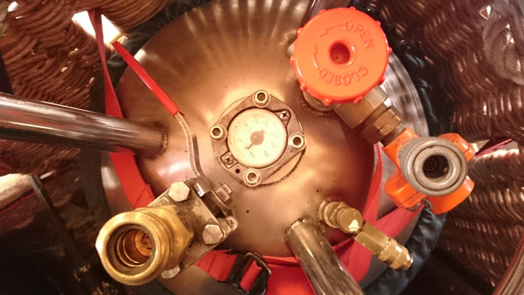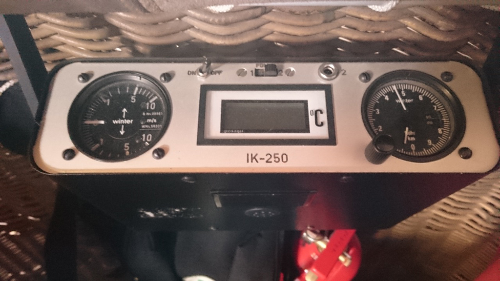 Ultramagic C1 basket, dimensions approximately 1.20m x 1.00m. Suede top rim. Bottom leather recently replaced. Cameron MK4 Super double burner (SN 1723 and SN 1726), vapour pilot lights, hoses replaced in 2007. REGO fittings on liquid hoses, Lorch connectors on vapour hoses. Piezo replaced in 2014. 2x Thunder 7 Colt V30 cylinders, REGO fittings, master valves with Lorch connectors. fuelsafe vents and hoses fitted. PRV/PPT/INT valid until 2024. Tempest inflation fan, with Honda GX200 6.5 HP engine. 1x Winter IK-250 analog altimeter / variometer.