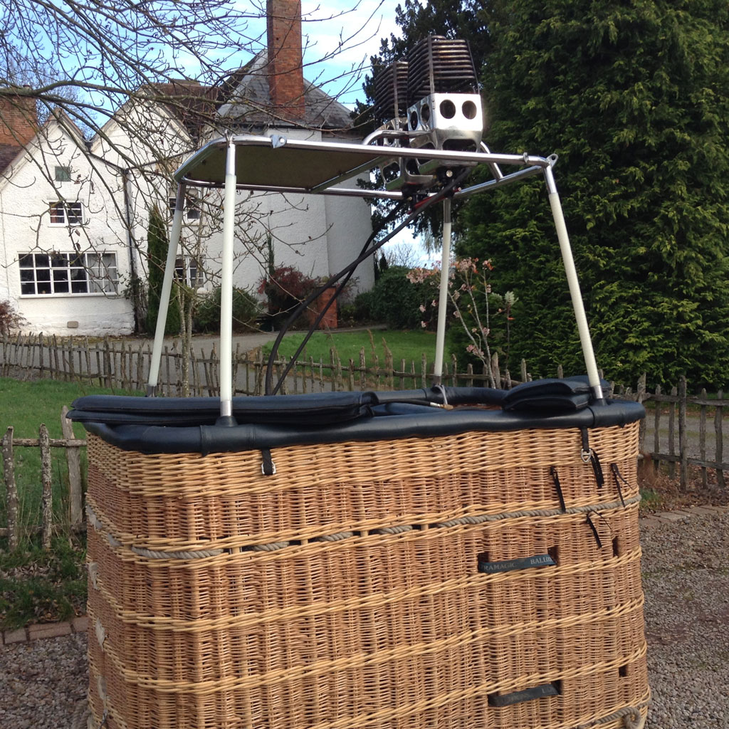 Cameron 120P CB3238 partitioned basket, less than 60 hrs flown. Leather top rim, side wall padding, cushion floor in passenger partition. Tank straps, first aid kit, drop line, fire extinguisher. Cameron double Shadow burners, REGO fittings, liquid pilot lights, recently overhauled, new hoses fitted. 3x Ultramagic M40 cylinders with quick shut off valves, REGO fittings. PRV/PPT/INT valid until September 2024. Located in Worcester, UK.