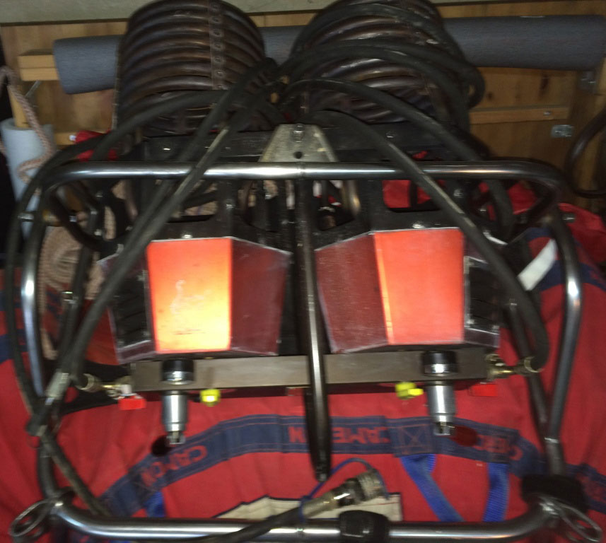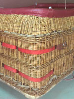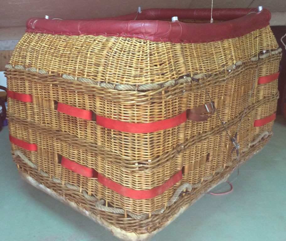 Schroeder VI basket, built 1991, approximately 650 hrs. Dimensions approximately 1.75m x 1.25m. Red leather top rim, including poles, covers, cylinder straps, 4 karabiners, fire extinguisher, quick release. Schroeder FB5 double burner, built 1991, approximately 650 hrs, TEMA fittings, vapour pilot lights. Please ask for shipping costs.