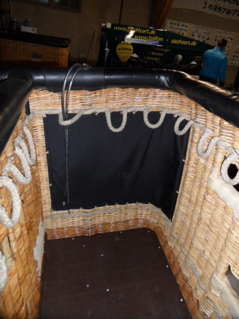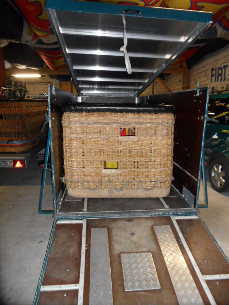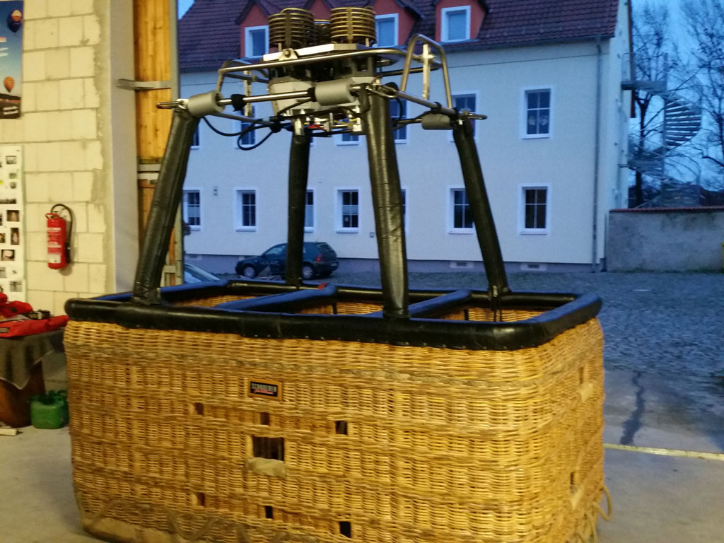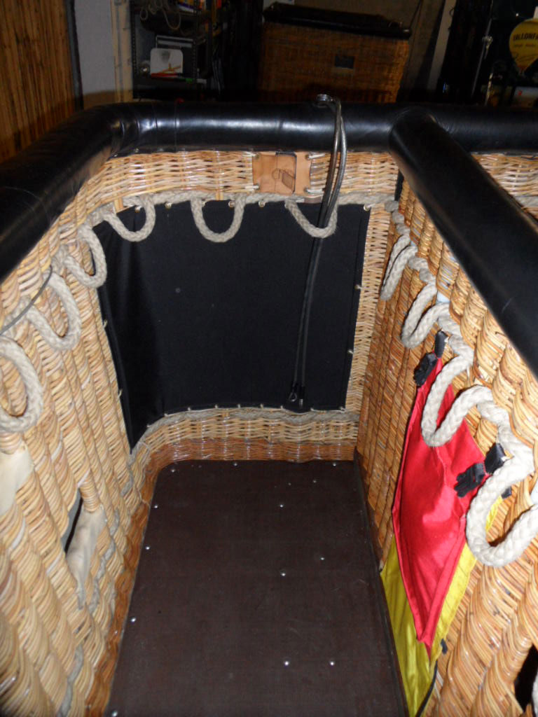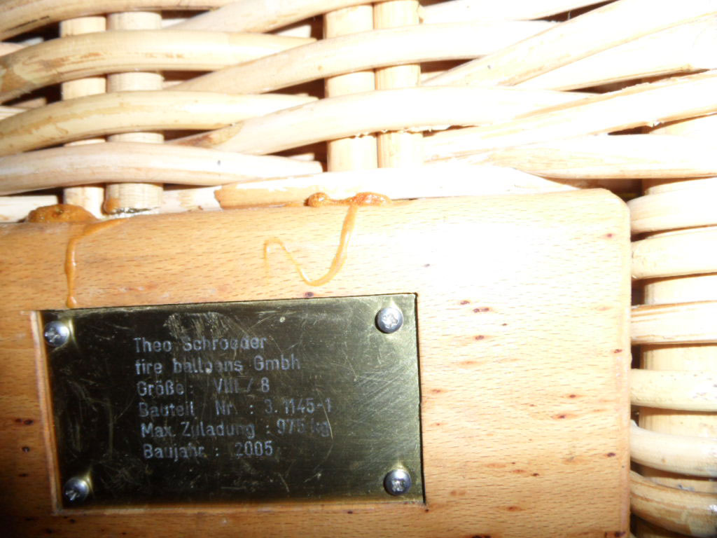 Schroeder VIII basket, 2.45m x 1.45m. Built 2005, black leather top rim, drop line, quick release, side wall padding in passenger compartment, bag with fire blanket and first aid kit, Dittel basket antenna with bag. In very good condition. Schroeder triple FB6 burner, built 2001, height adjustable frame. Inspected with EASA Form 1 December 2015.