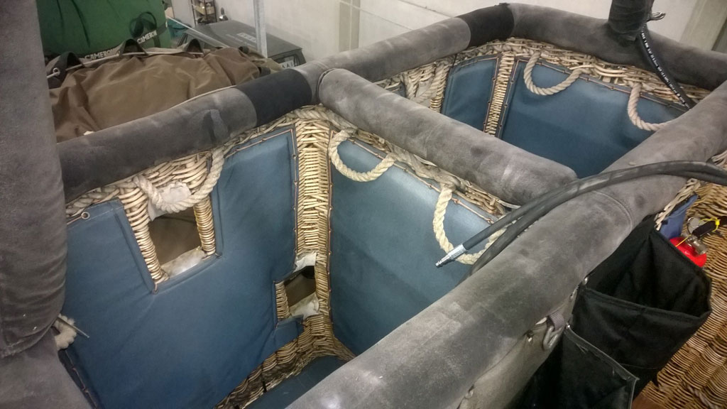 Cameron 180TT basket, with navy suede top rim, cushion floor, side wall padding, smart vent bag, storage bag, first aid kit, fire extinguisher, 8 karabiners. Cameron double MK4 Super burner with vapour pilot lights. Burner completely overhauled in December 2015 with new - extra long - hoses supplied by Cameron Balloons Ltd. Multihole jets. All in airworthy and solid condition, but well used. Comes with fresh EASA Form 1. Immediately available.