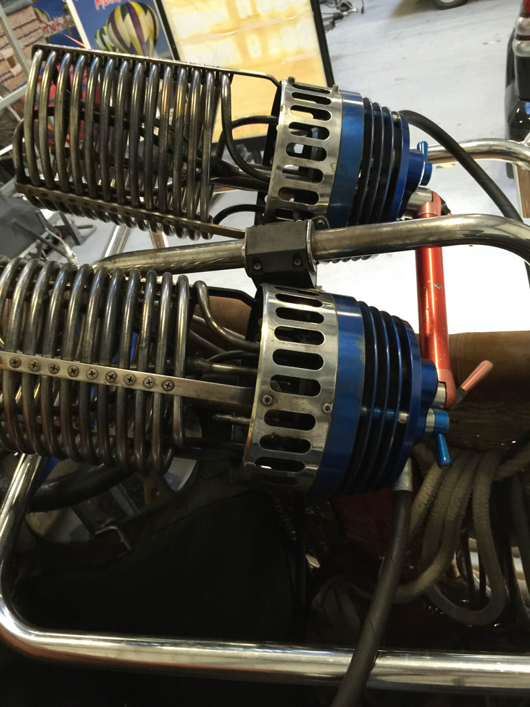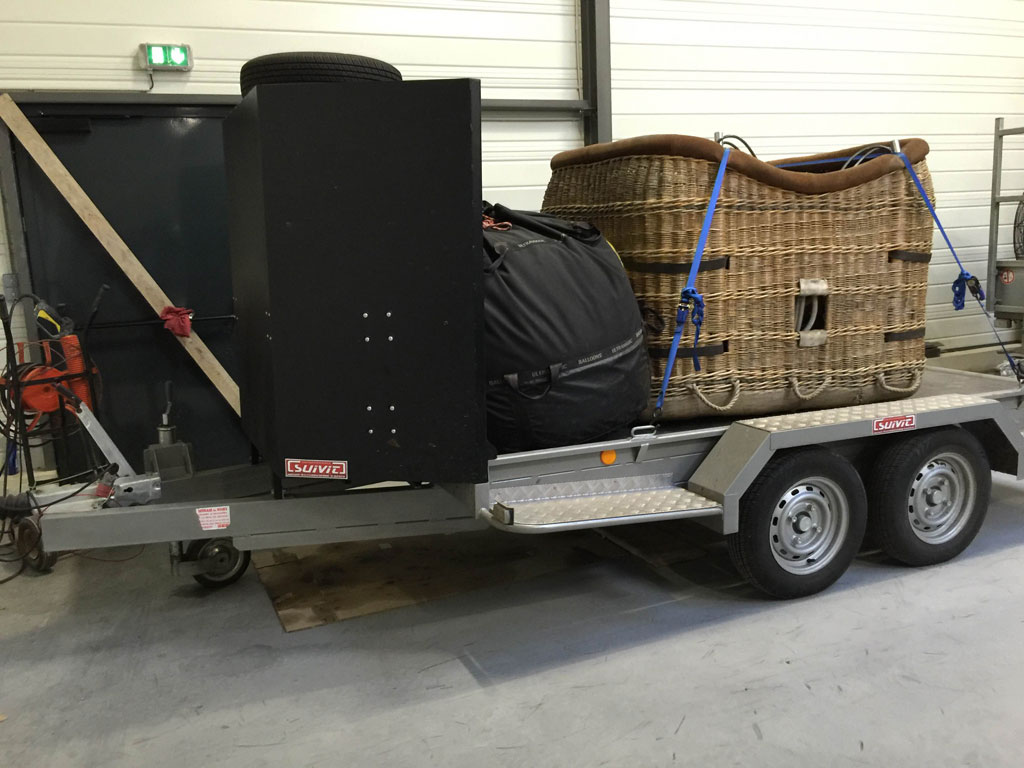 F-HAMH, Ultramagic M-120, built 2009, 444 flights, 470 hrs flown, 4 hrs tethered. Top half Ultralast. Rapid deflation system. Cameron CB300-4A Aristocrat basket, built 2007, approximately 500 hrs. Brown suede top rim, cushion floor, fire extinguisher, drop line. Cameron double Sirocco burner, built 2007, approximately 500 hrs. Hoses replaced in 2014, REGO fittings. 2x Worthington cylinders (1x master, 1x slave), REGO fittings, PRV/PPT/INT valid until 2024, blue covers. 1x Ultramagic M30 cylinder, built 2009, REGO fitting, PRV/PPT/INT valid until 2019, black cover. 1x Cameron 40 liter cylinder, built 2007, REGO fitting, PRV/PPT/INT valid until 2017, blue cover. 8.0 HP inflation fan, Honda engine, built by Cameron Balloons. Carbon fiber propeller, flip wheel stainless steel frame. Suivit tandem axle trailer, built 2010. 3.00m x 1.50m, max load 750 kg. ARC valid until November 2016.