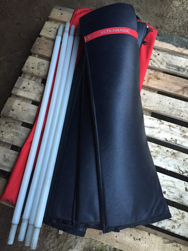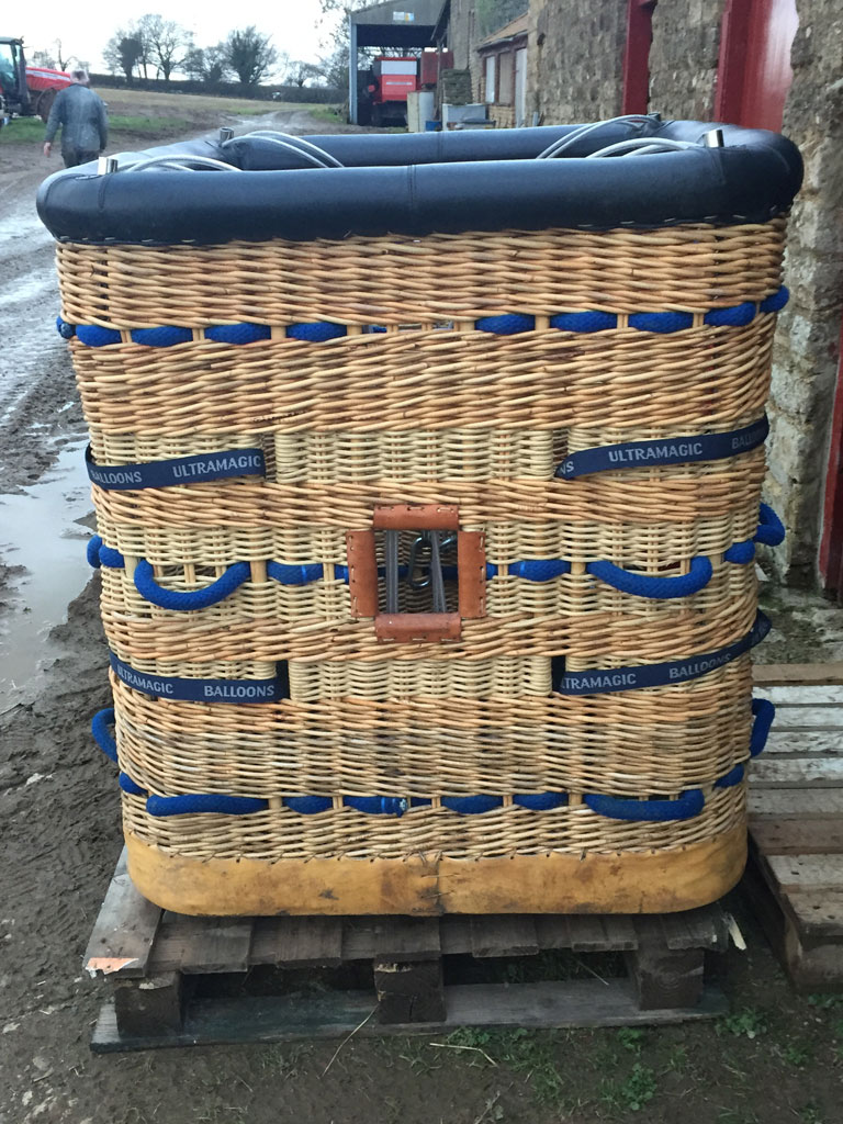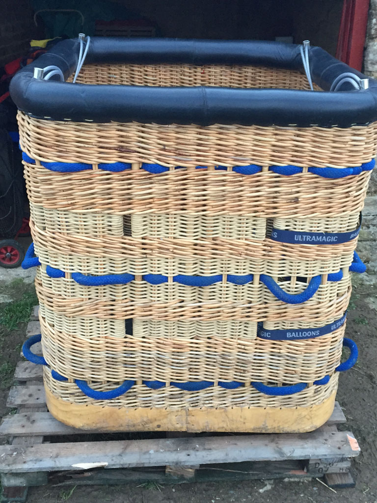 Ultramagic C2 basket, 1.0m x 1.0m, built 2009, only 37 hrs. SN C-2/24. Black leather top rim, cushion floor, including 4 poles, 4 covers, 4 tank straps, 4 karabiners, pole bag, fire extinguisher in pouch, drop line in bag, Ultramagic basket cover, PVC water proof basket cover. Looked after very well, in beautiful condition.