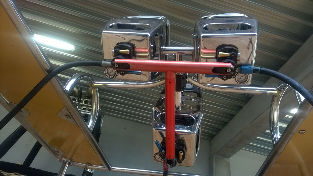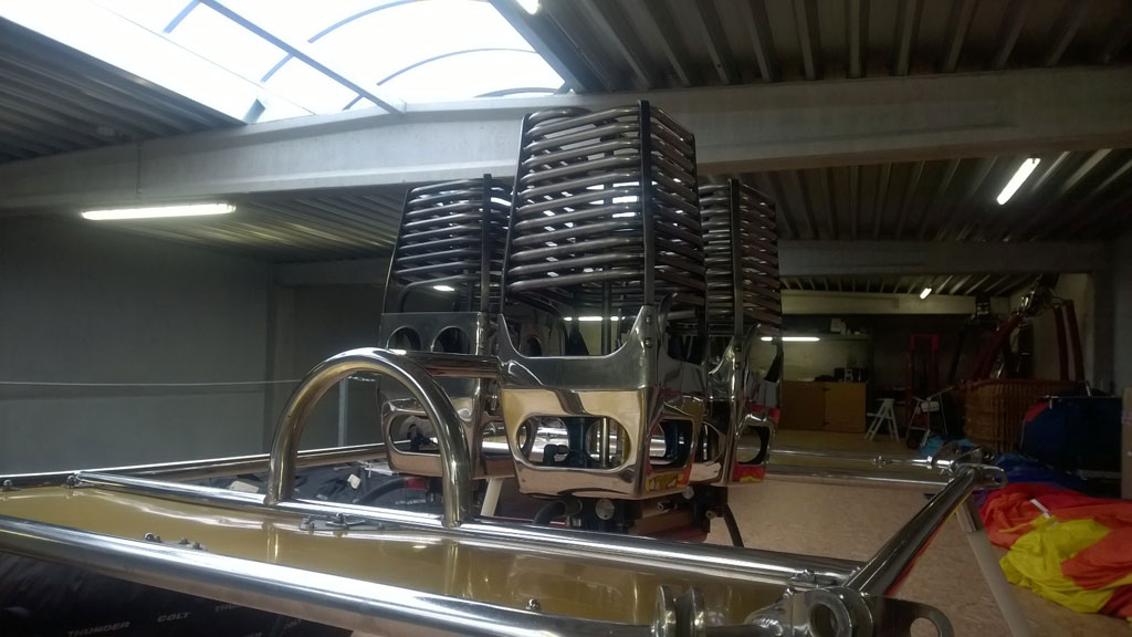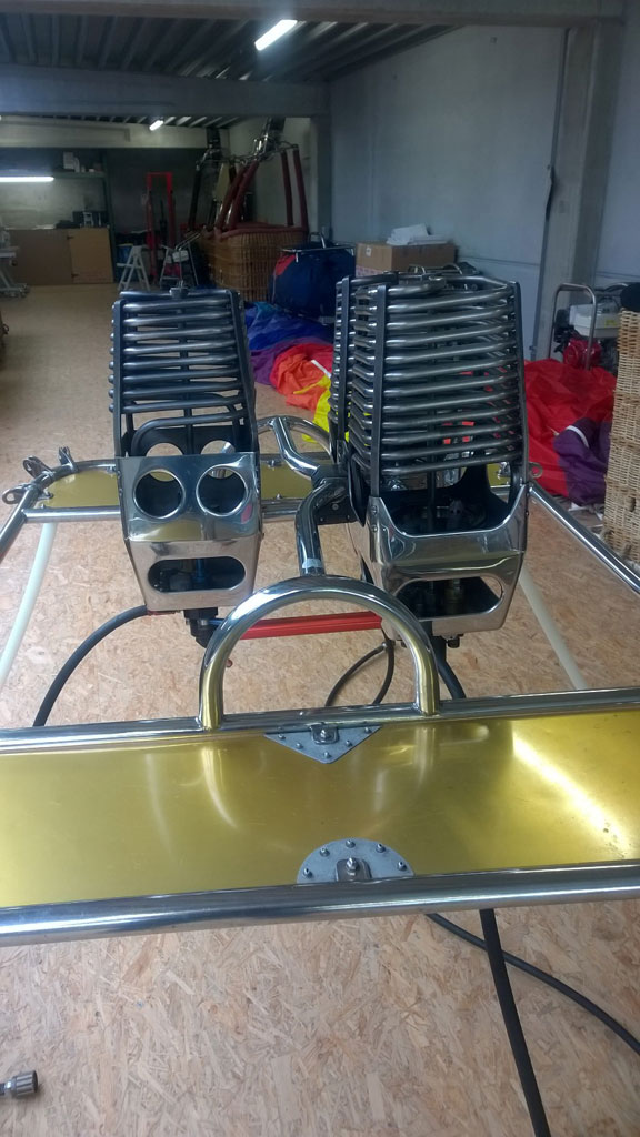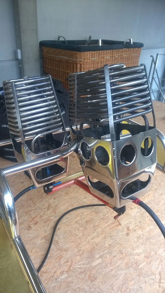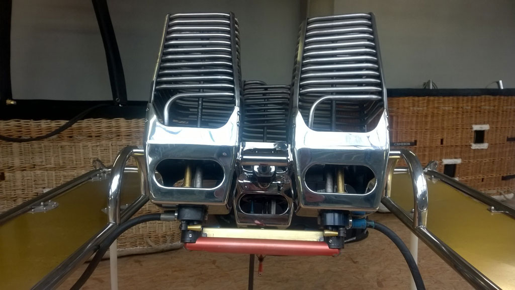 Cameron triple burner, 1x Shadow, 2x Stealth. In gimbal block frame with metal heat shields, for use on TT baskets. Liquid pilot lights, multihole jets, squeeze action bar. In very good condition. Completely serviced in January 2016. Immediately available, comes with fresh EASA Form 1.
