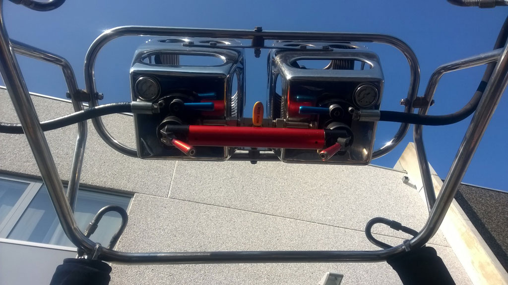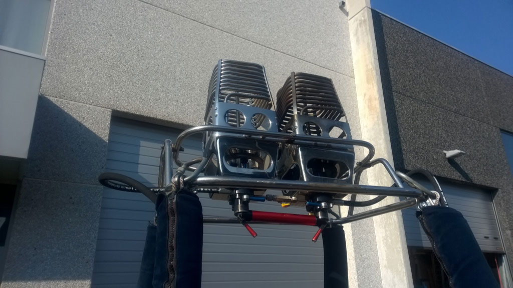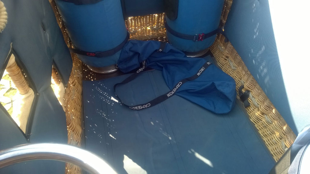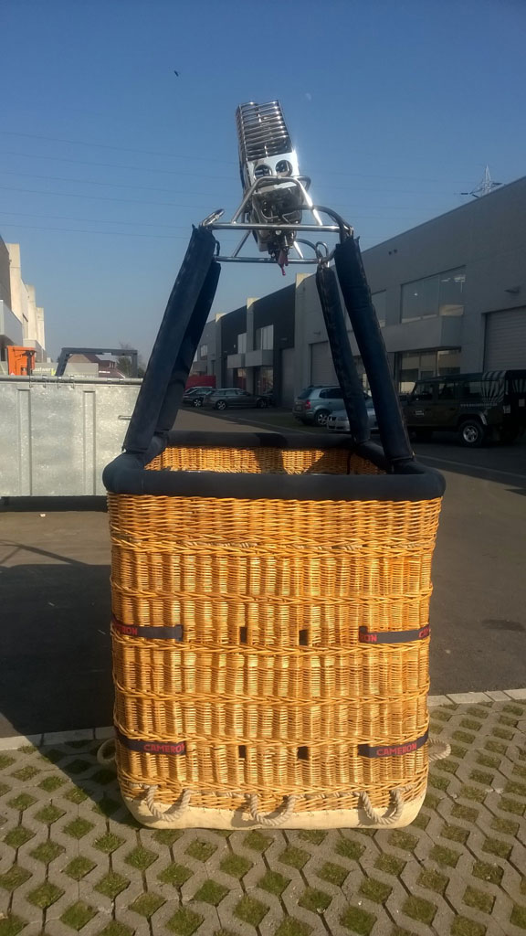 Cameron CB303 120 open basket, with navy suede top rim, side wall + end wall padding, cushion floor, 2 step holes, 4 tie-down points at outside. 8 new Cameron navy quick lock tank straps, 4 karabiners. No damages, in perfect shape. Cameron double Super Shadow burner with liquid pilot lights, multihole jets, new hoses. REGO fittings. No damages, completely serviced in 03/2016 with new liquid pilot light filters/jets, new O-rings and KSP/125. 4x Thunder & Colt V30 cylinders, REGO fittings, new PRV/PPT valid until 01/2026. Blue covers with black pockets, bleedvalves fitted with fuelsafe fittings. All equipment in perfect condition, immediately available, comes with fresh EASA Form 1.