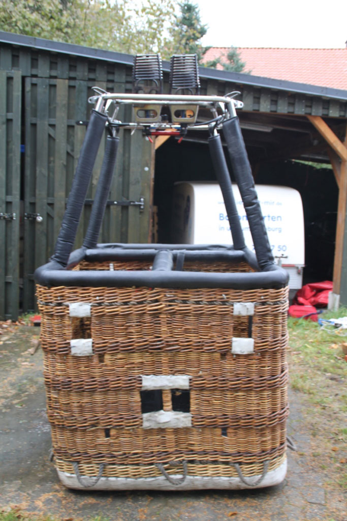 Cameron CB992 single T basket, built 1997, 250 hrs. Black leather top rim, side wall padding, cushion floor, drop line, side wall storage bags, fire extinguisher pocket. In good condition. Cameron Stealth / Shadow double burner, built 1997, 300 hrs. REGO fittings, 1x liquid pilot light, 1x vapour pilot light. Hoses replaced in 2008.