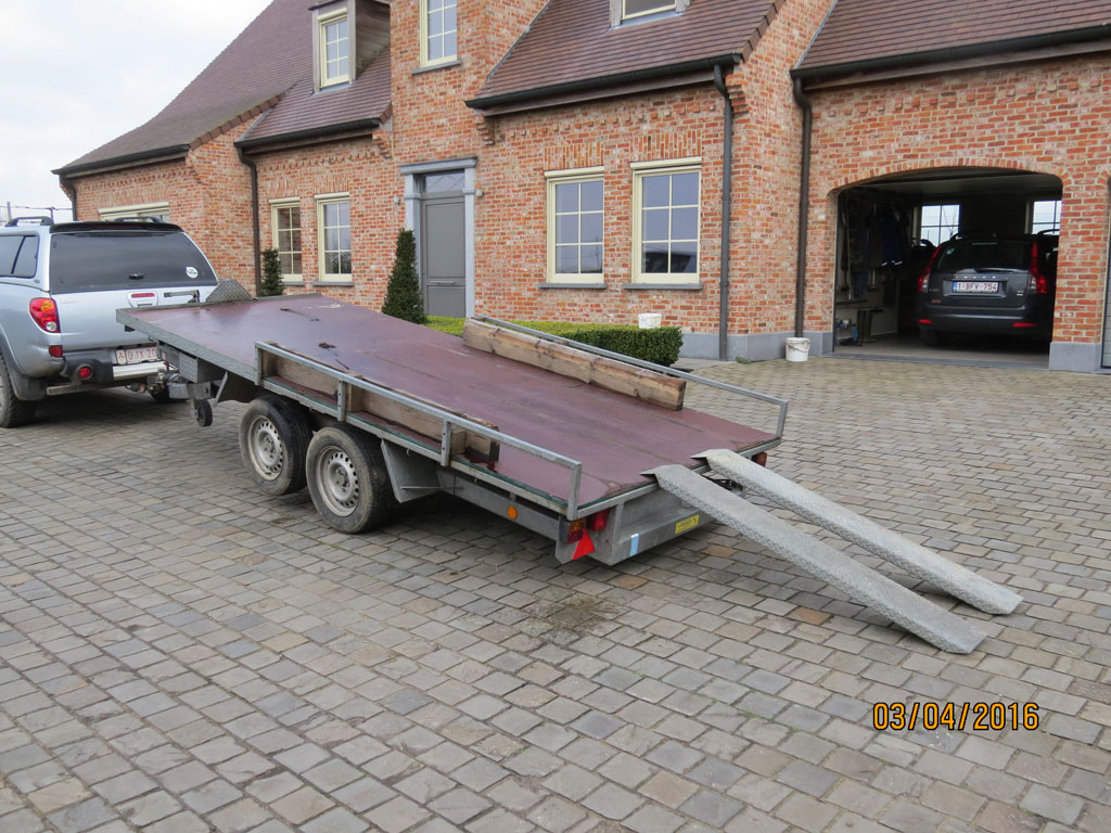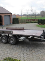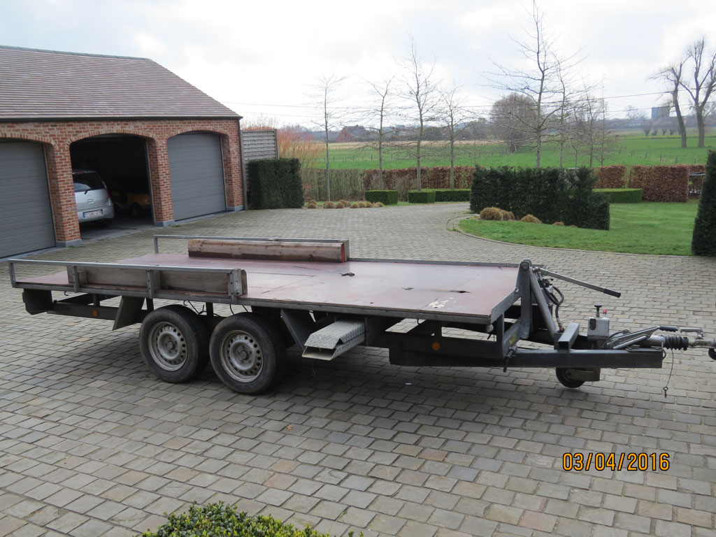 Tandem axle flat bed trailer, built 03/2002. Platform dimensions 4.20m x 1.70m. With hydraulic tilting system. Trailer in technical good condition, good tyres. Can be used with 180 or 210 basket.