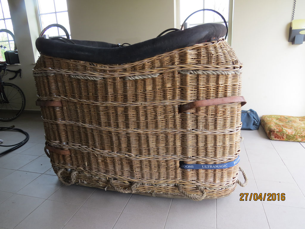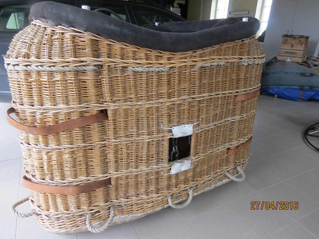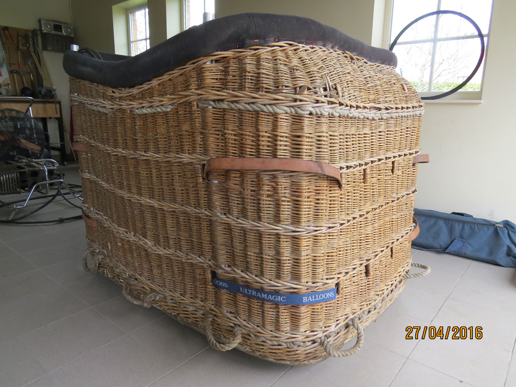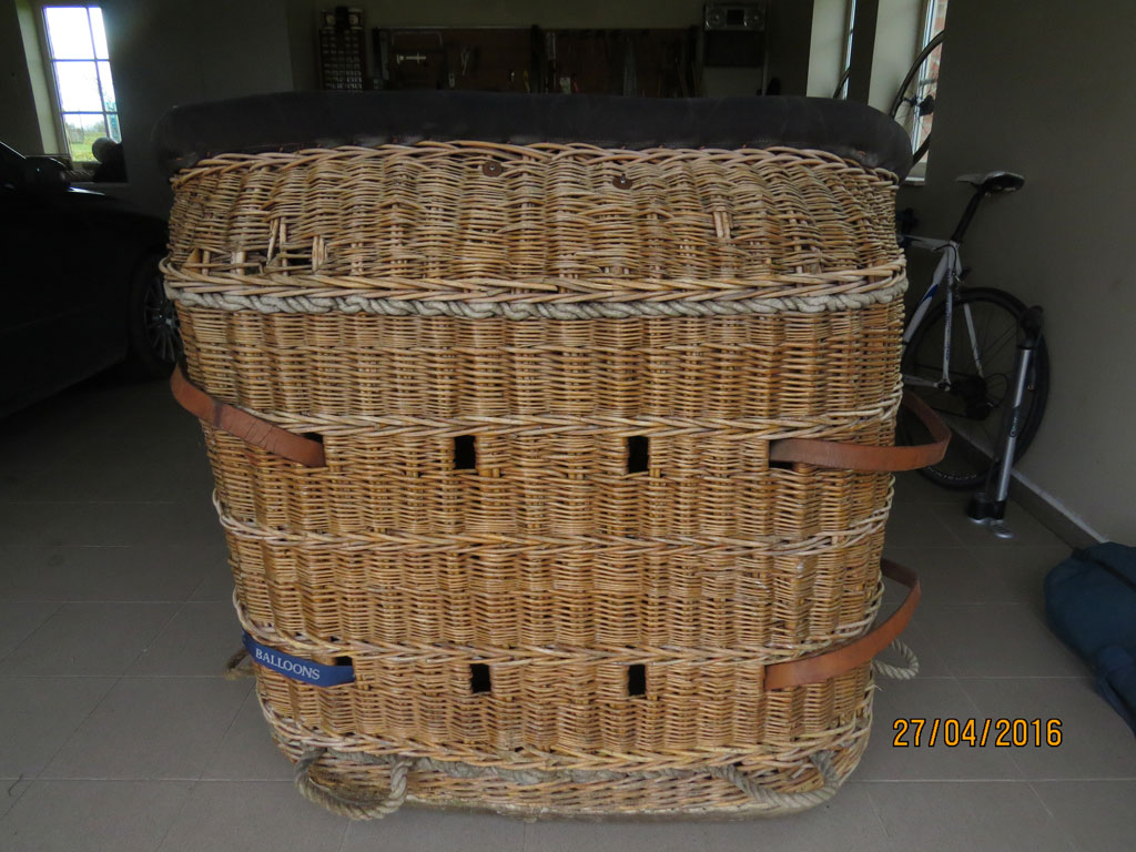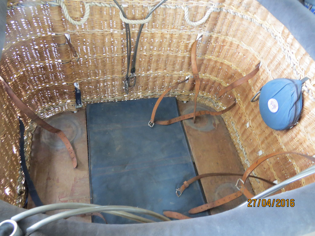 Cameron Aristocrat 90/105 basket (CB300-4A) built 12/1992, approximately 750 flights. Navy suede top rim, cushion floor, drop line, fire extinguisher, 8 leather tank belts.