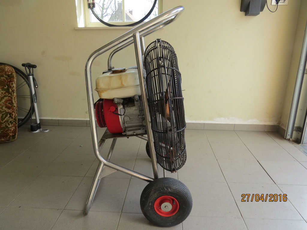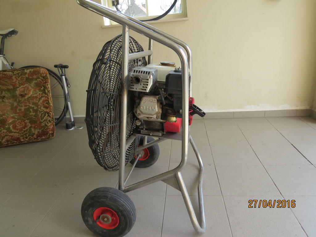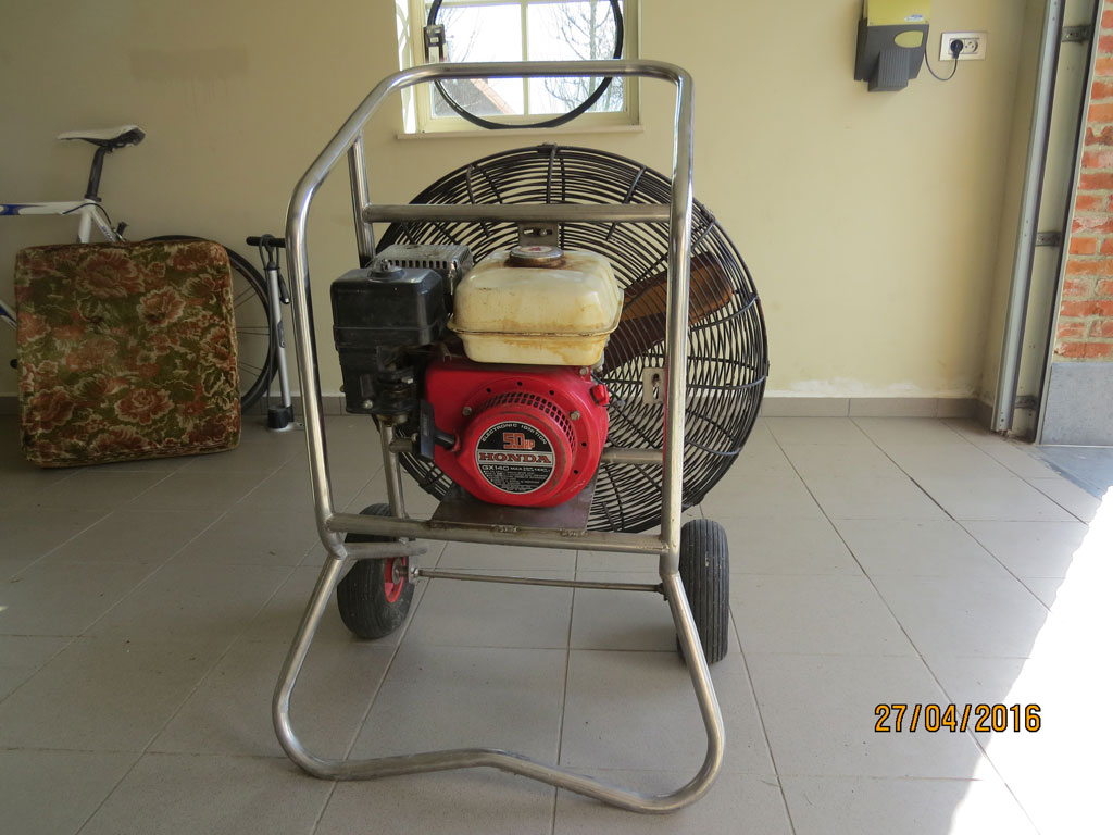 5.0 HP inflation fan, Honda engine, starts immediately. Wooden propeller, stainless steel frame.