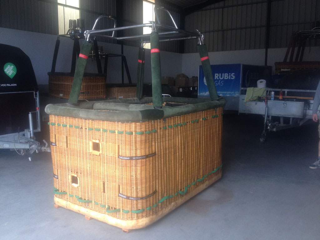 Ultramagic C5 wheelchair accessible basket, built 2002, 2.20m x 1.40m. About 400 flights. Green suede top rim, side wall padding, drop line and burner frame included. In overall good shape.