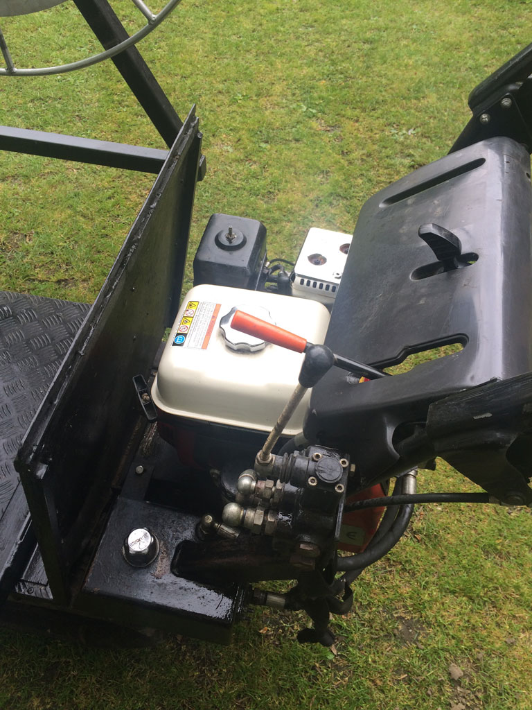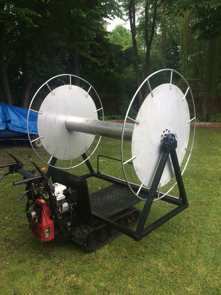 Caterpillar-track transporter with winder. Solidly built, recently serviced. Including slot on drum for crown ring, roller and letterbox opening to pre squeeze envelope.