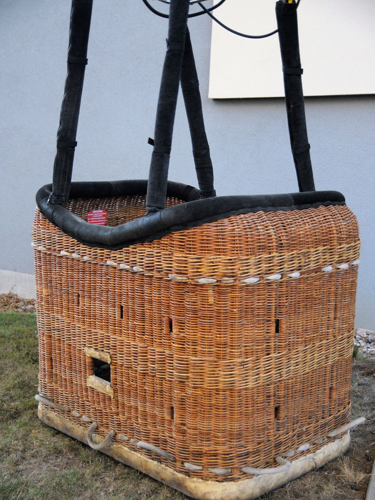Thunder and Colt 105/120 basket, built 1993, 1.60m x 1.10m, 1.30m high. Black suede top rim. Fire extinguisher included. Top, wicker and floor all in excellent condition, as new. Comes with fresh EASA Form 1. Perfect for 105/120 envelopes.